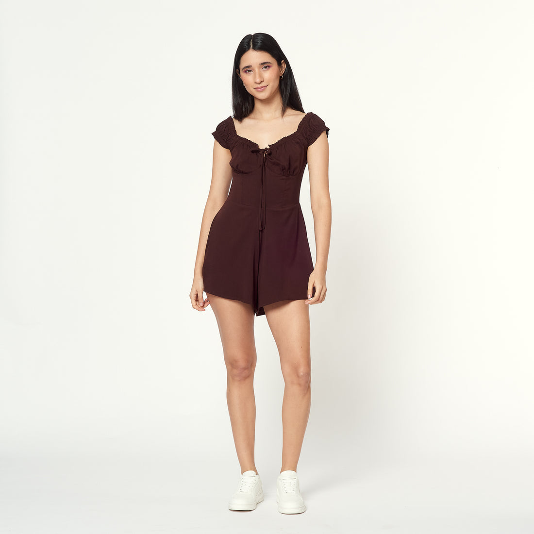 Enterizo en rayón de diseño moderno. El color marrón añade sobriedad y un aire sofisticado....