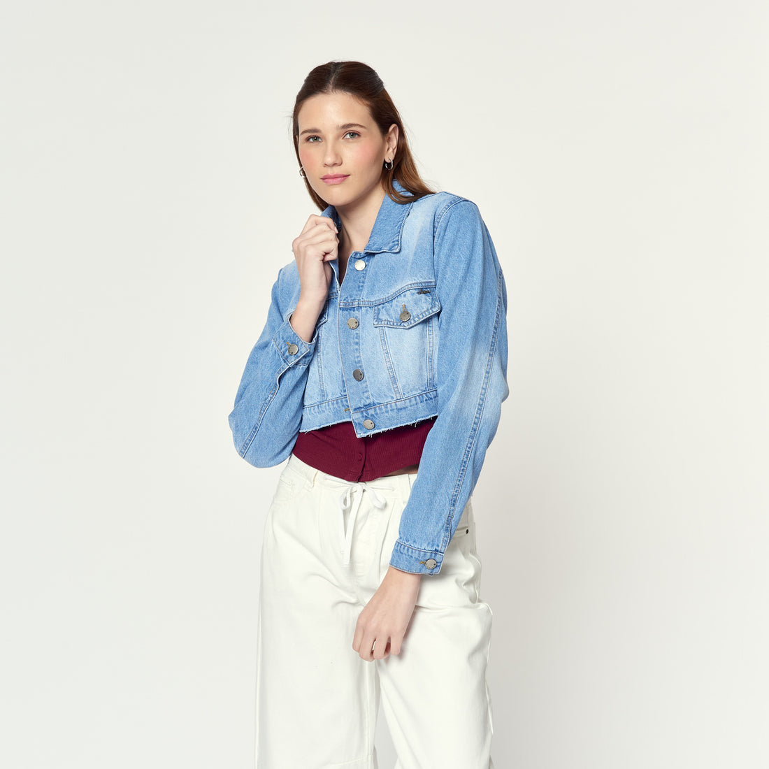 Una casaca para las que no paran. Denim rígido con mucho estilo, ideal para armar...