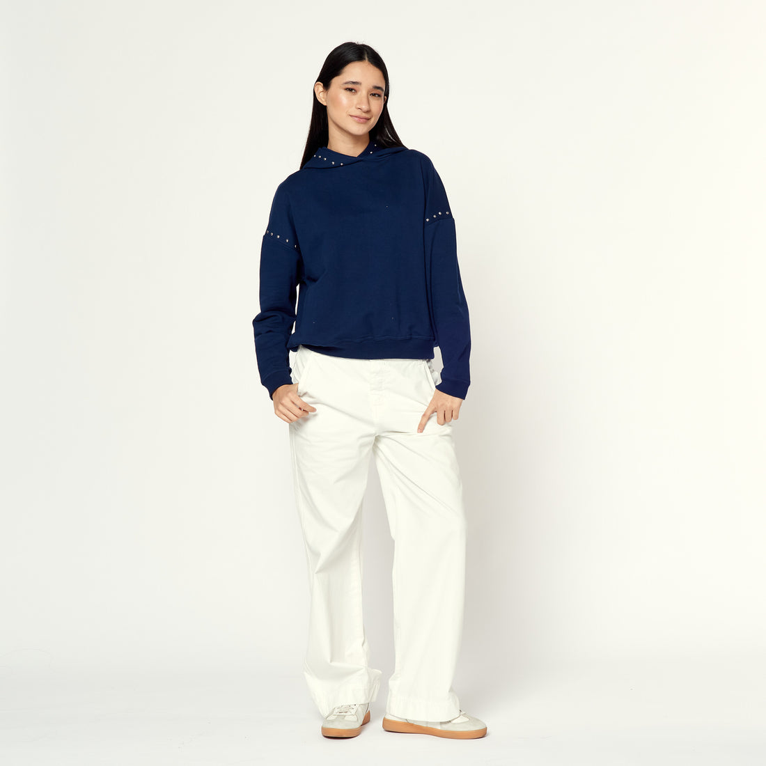 Azul con actitud metálica. La Polera Tachada le da un giro rocker a tus días...