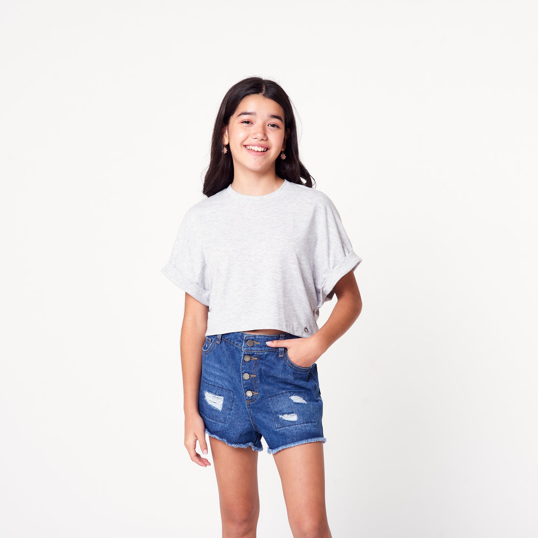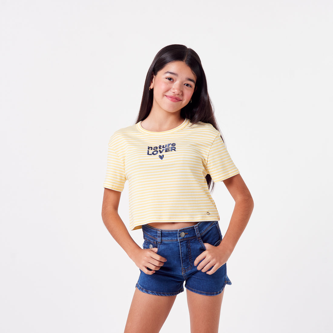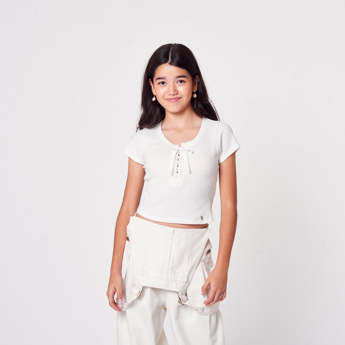 Essential for you <3 Polo crop manga corta con escote redondo y detalle de bordado...