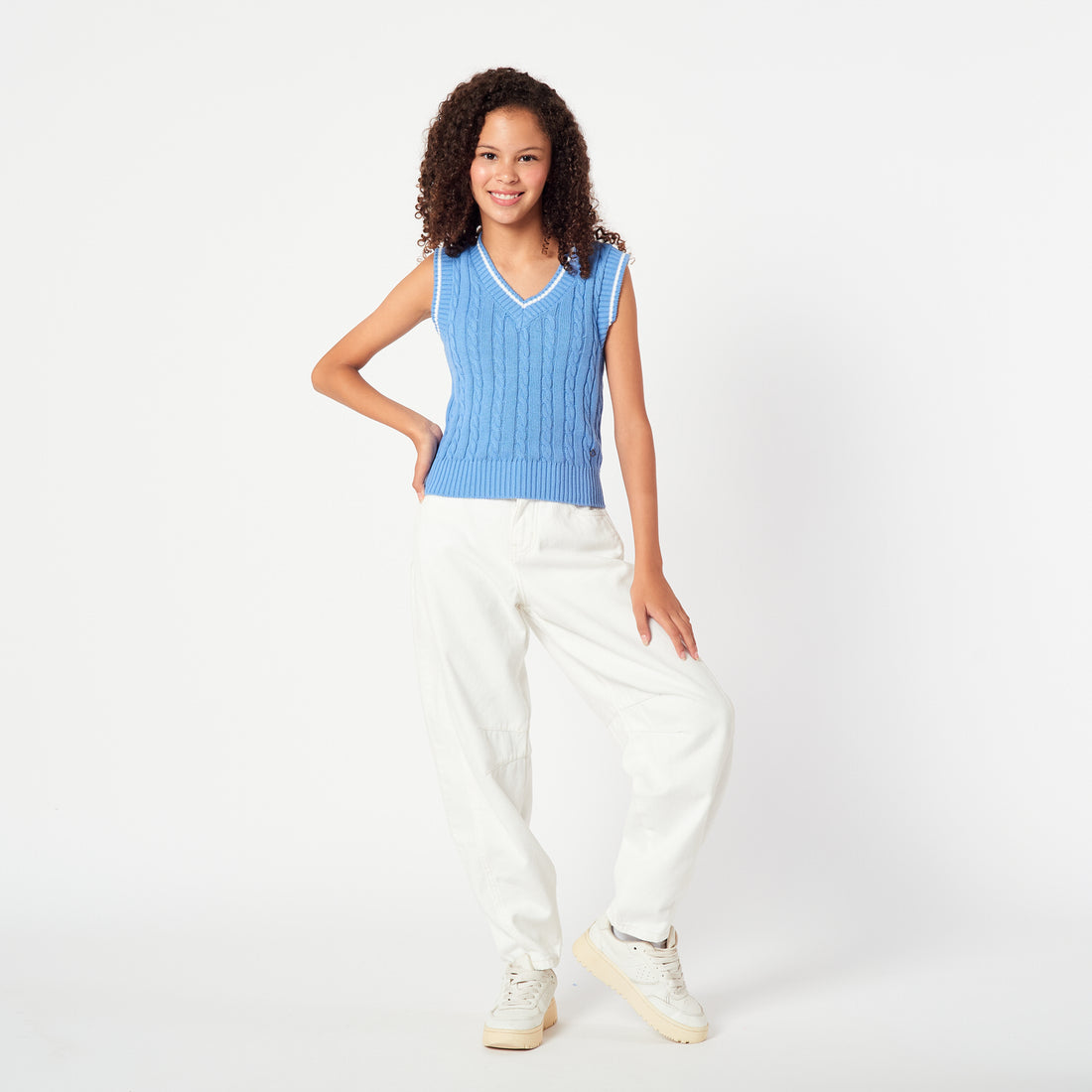 COOL BLUES 😍 ! Chaleco tejido con escote en v y detalle de tejido diferenciado...