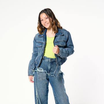 Needing You ✨ Casaca denim con cuello camisero , bolsillos delanteros , cierre central y...