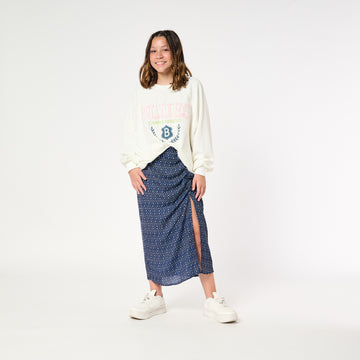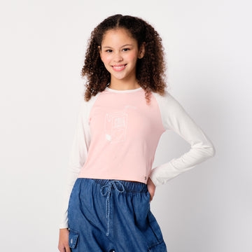 Comfy ! Polera manga rangla larga con escote redondo , estampada y detalle de bordado...