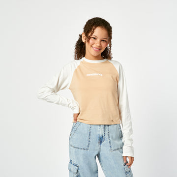 Love it! Polo crop manga larga con escote redondo, cuello collareta, estampado delantero y pequeño...