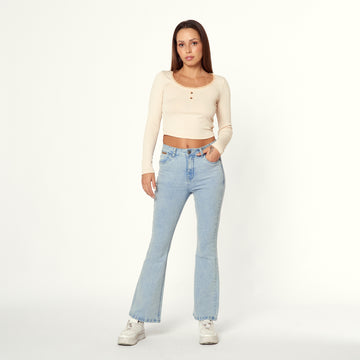 Comodidad y estilo que realzan tu figura. El Jean Bombona en denim streech celeste ofrece...