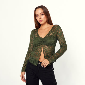 Un toque femenino y misterioso para tu look. El Polo Morticia en encaje verde oscuro...