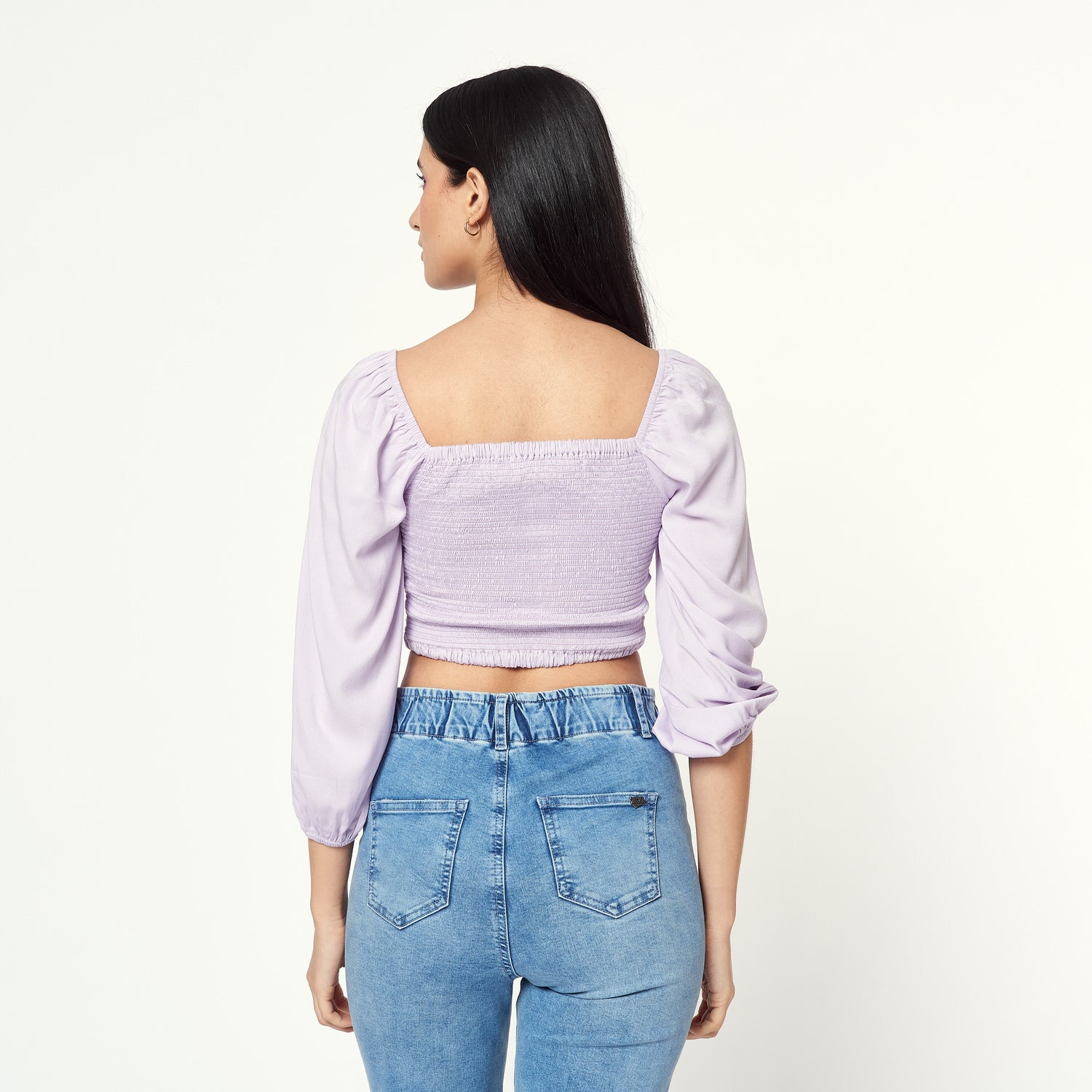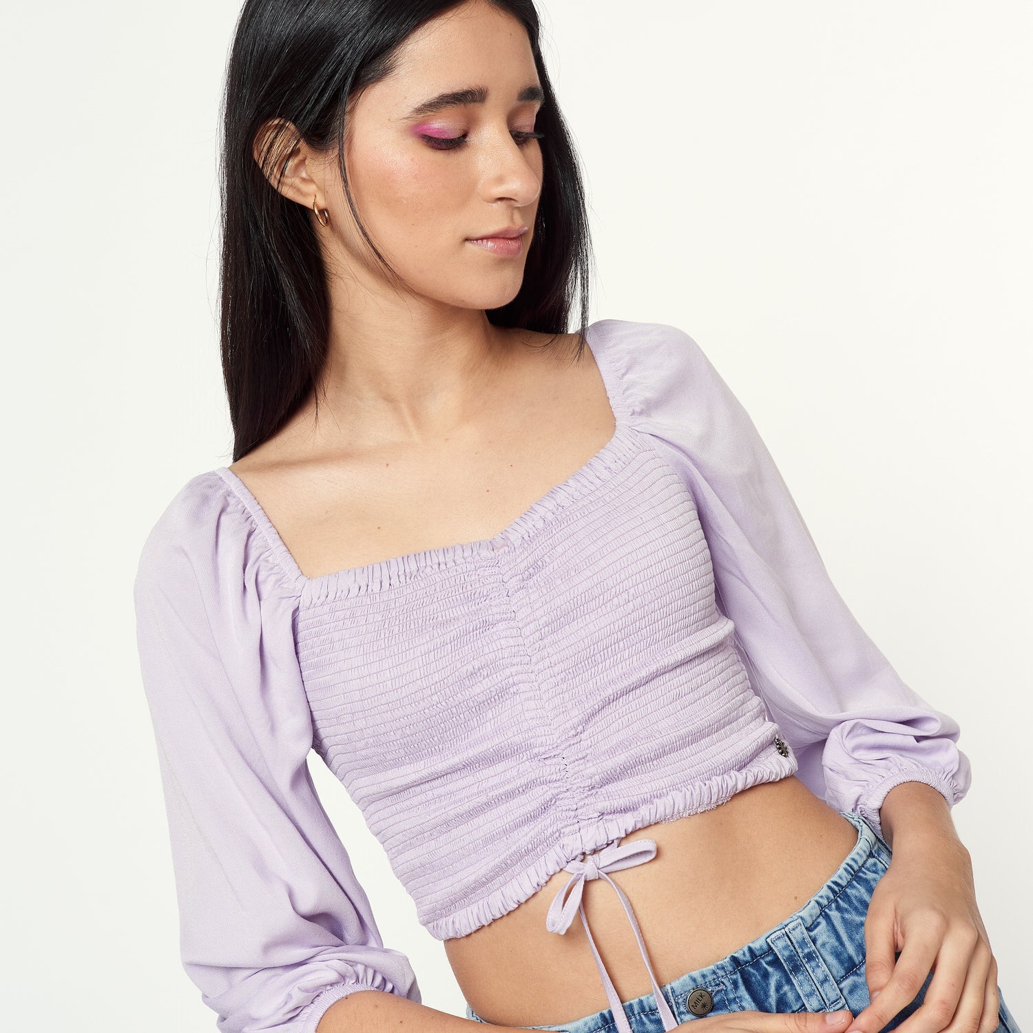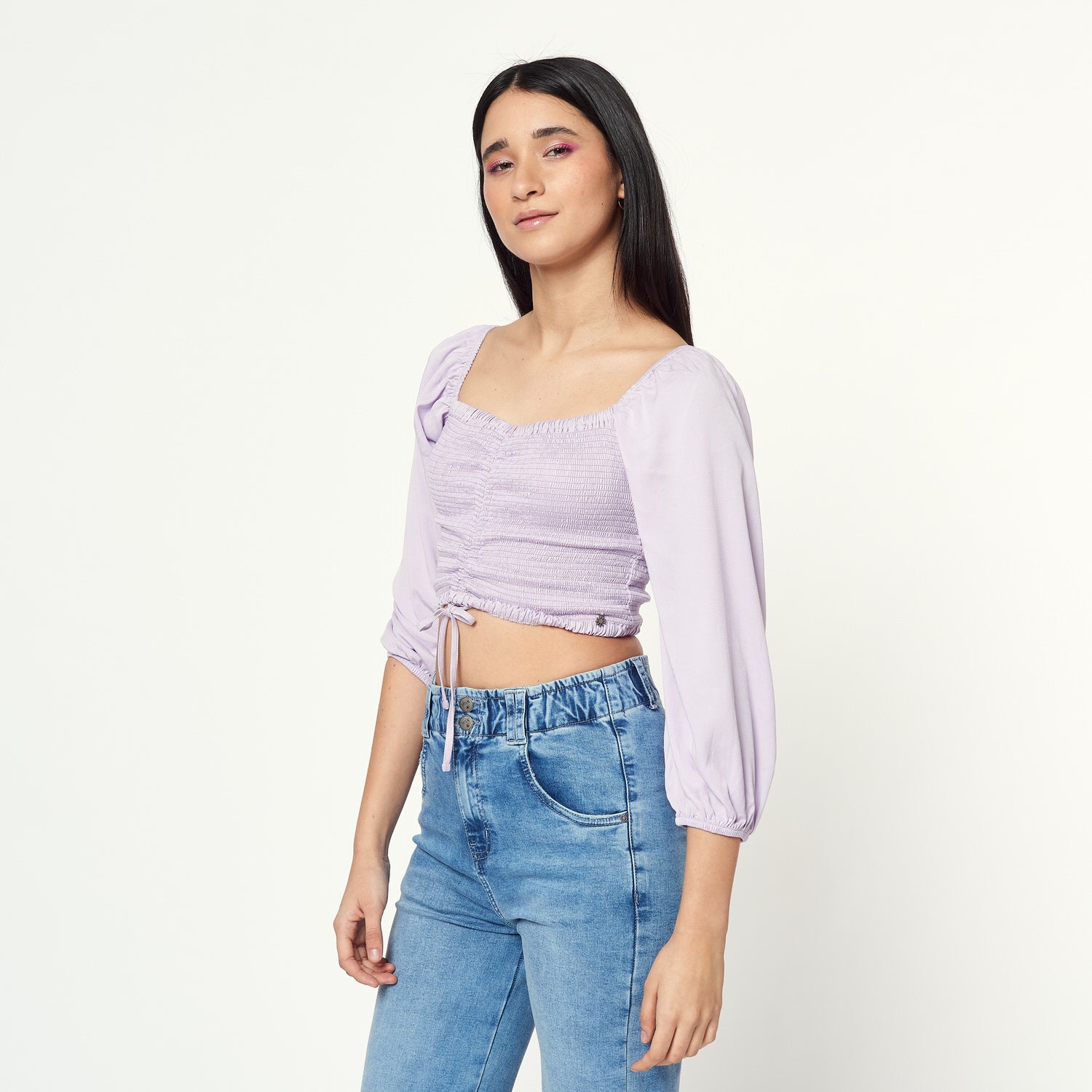 Blusa en rayón de caída suave. El color lila aporta un aire juvenil y fresco a cualquier look.