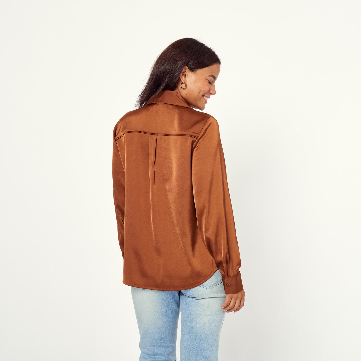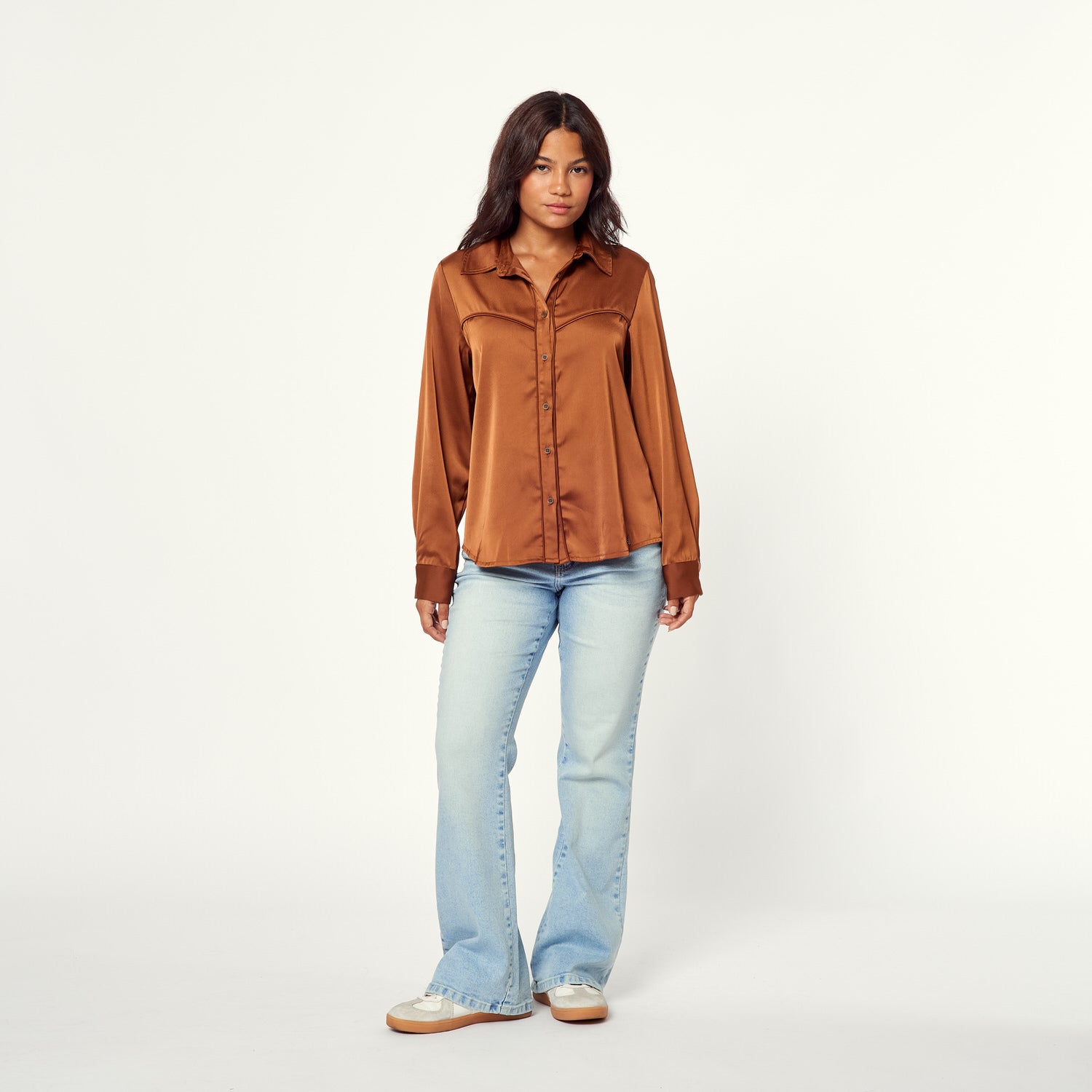 ¡Brilla con la Blusa Leticia! En satín marrón, esta blusa es perfecta para un look sofisticado con un toque cool. Su textura suave y su color intenso te harán destacar en cualquier ocasión. Úsala para una noche especial o para darle un toque chic a tu outfit diario.