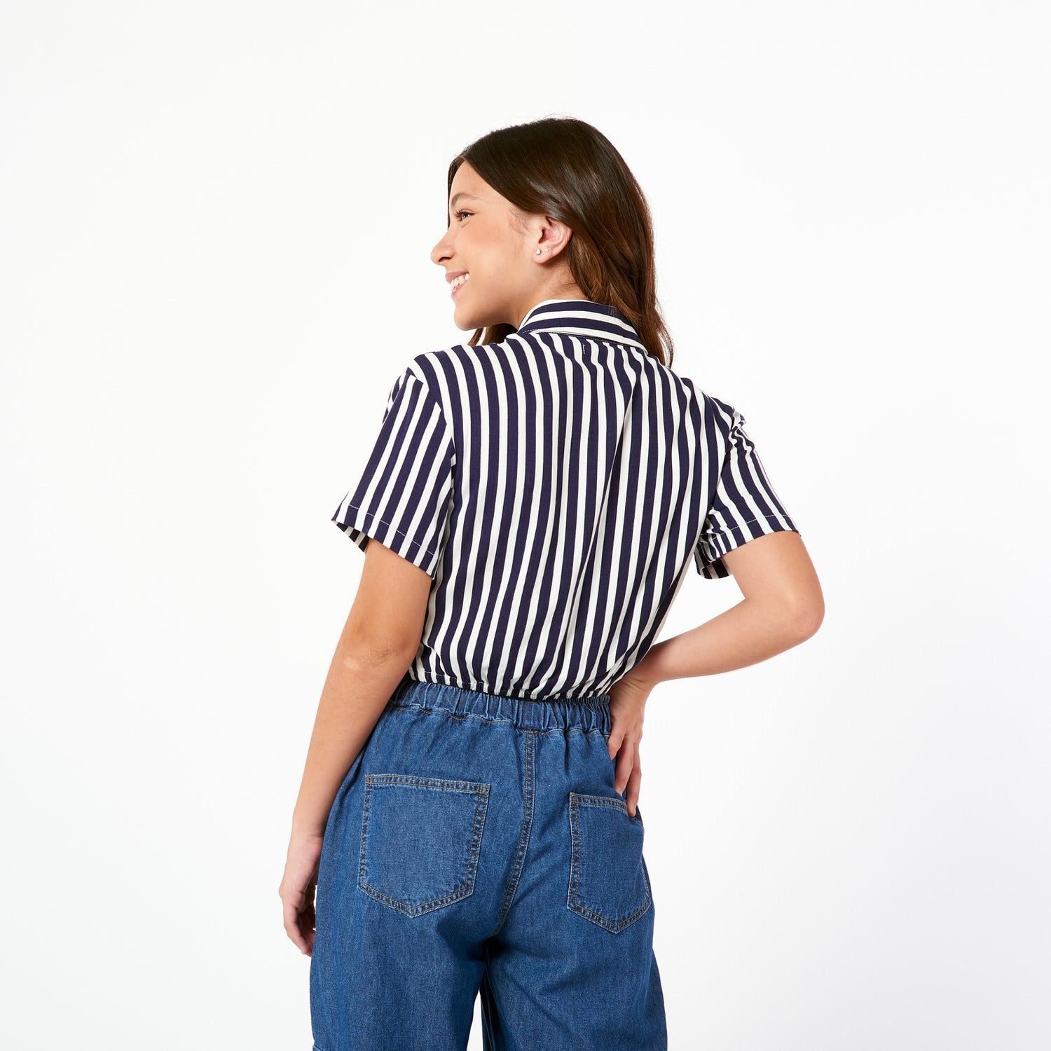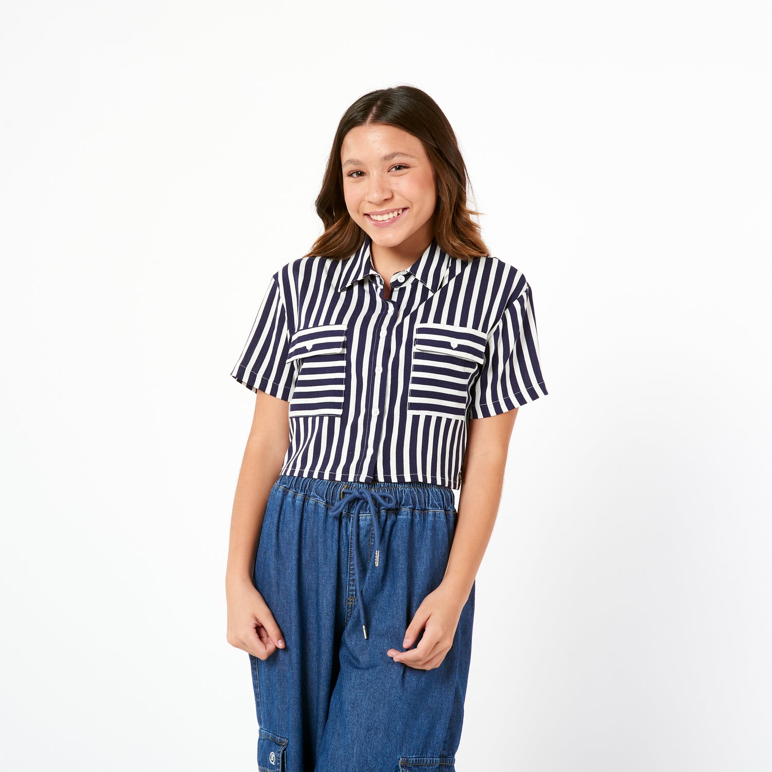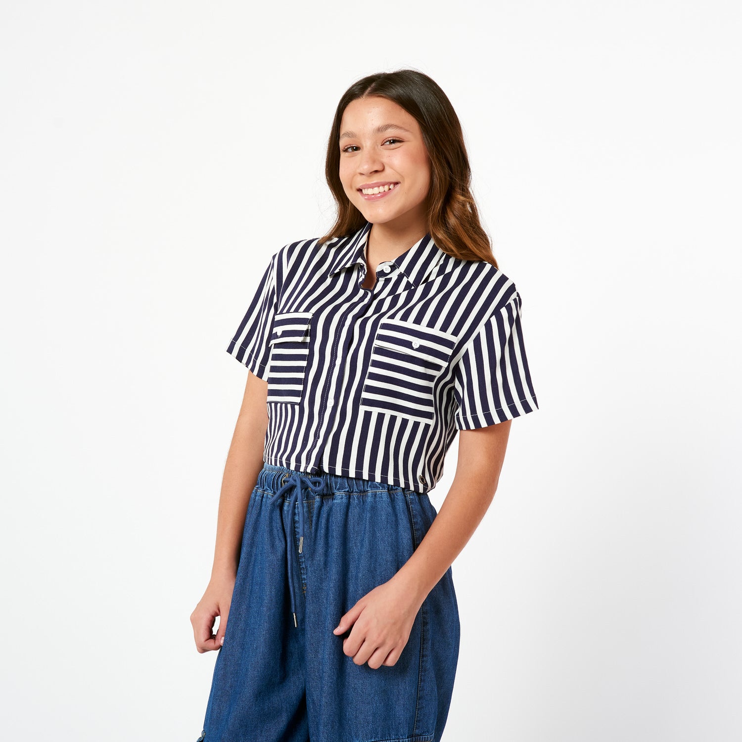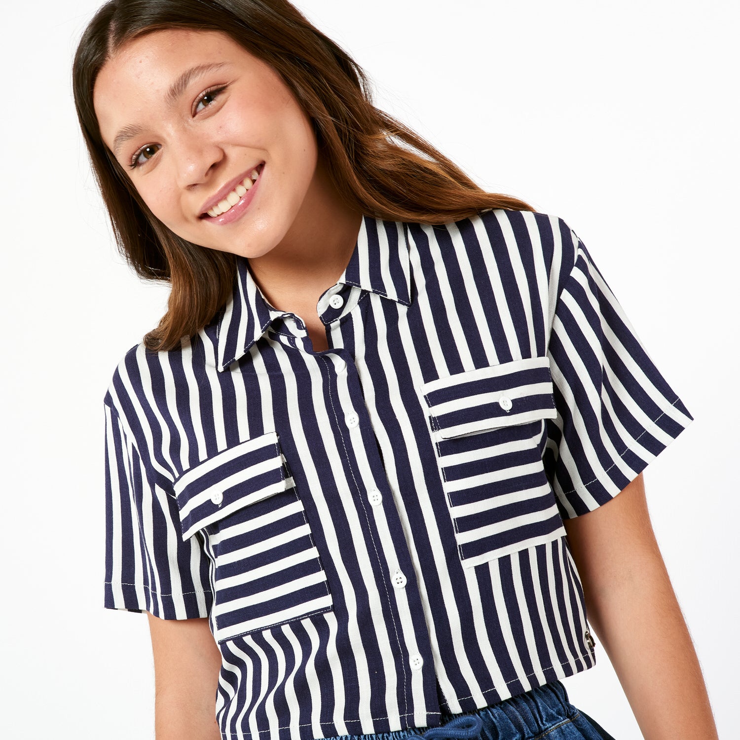 ¡Rayas con onda! La Blusa Look en lino con estampado de rayas tiene un corte recto y un fit holgado que te dará un look relajado pero con estilo.