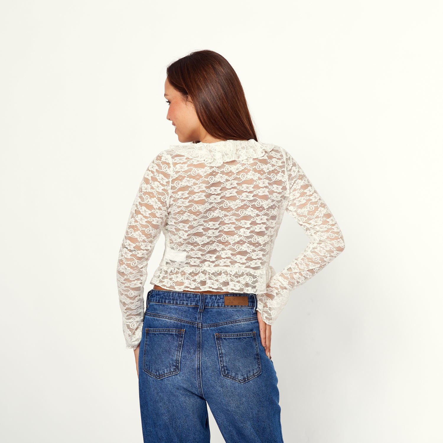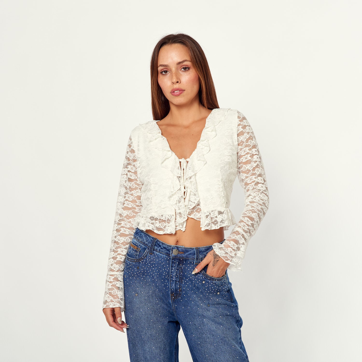 Un toque romántico y delicado para tu look. La Blusa Lucy en encaje color hueso es una pieza femenina y especial. Su diseño con detalles de encaje le da un toque romántico y sofisticado. Perfecta para combinar con faldas midi, pantalones de vestir o jeans para un look elegante y sutil.