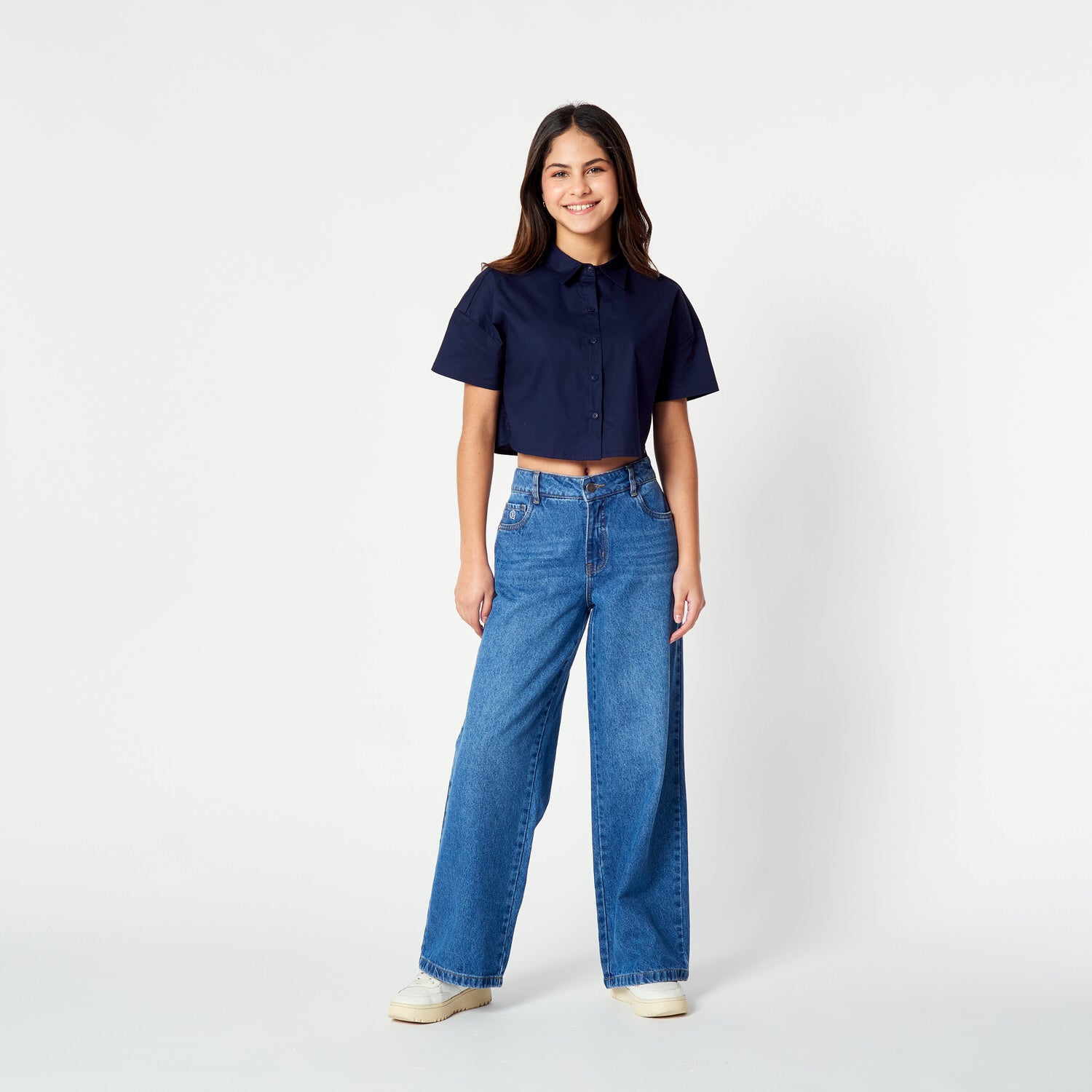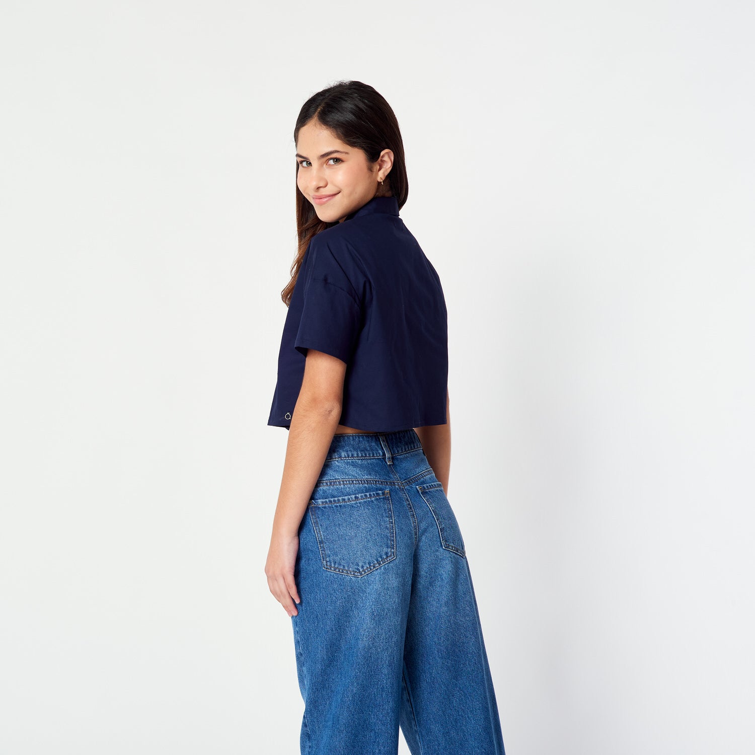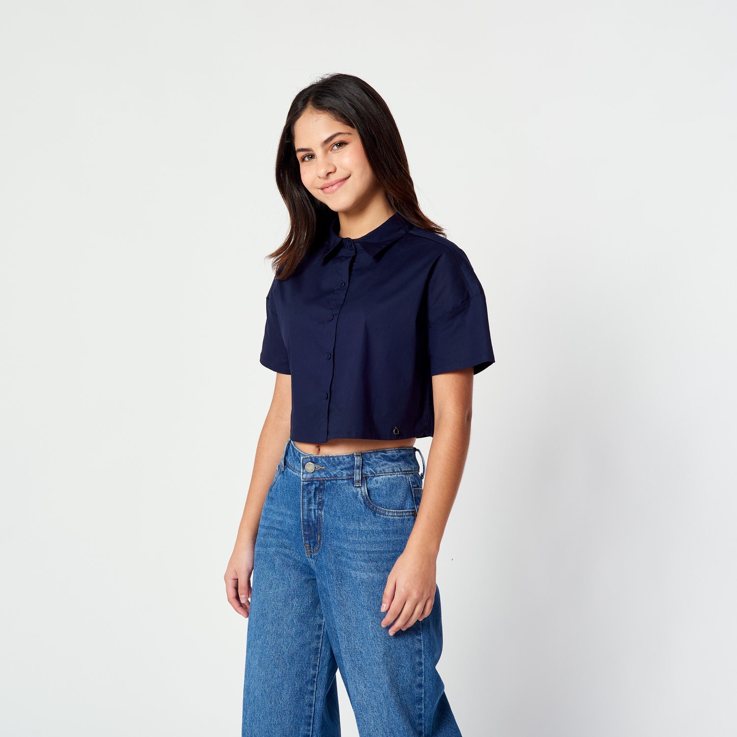 IN LOVE💙Blusa manga corta con cuello camisero, pechera con doblez y 6 botones