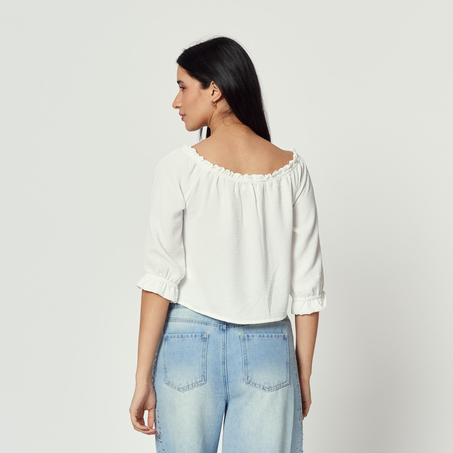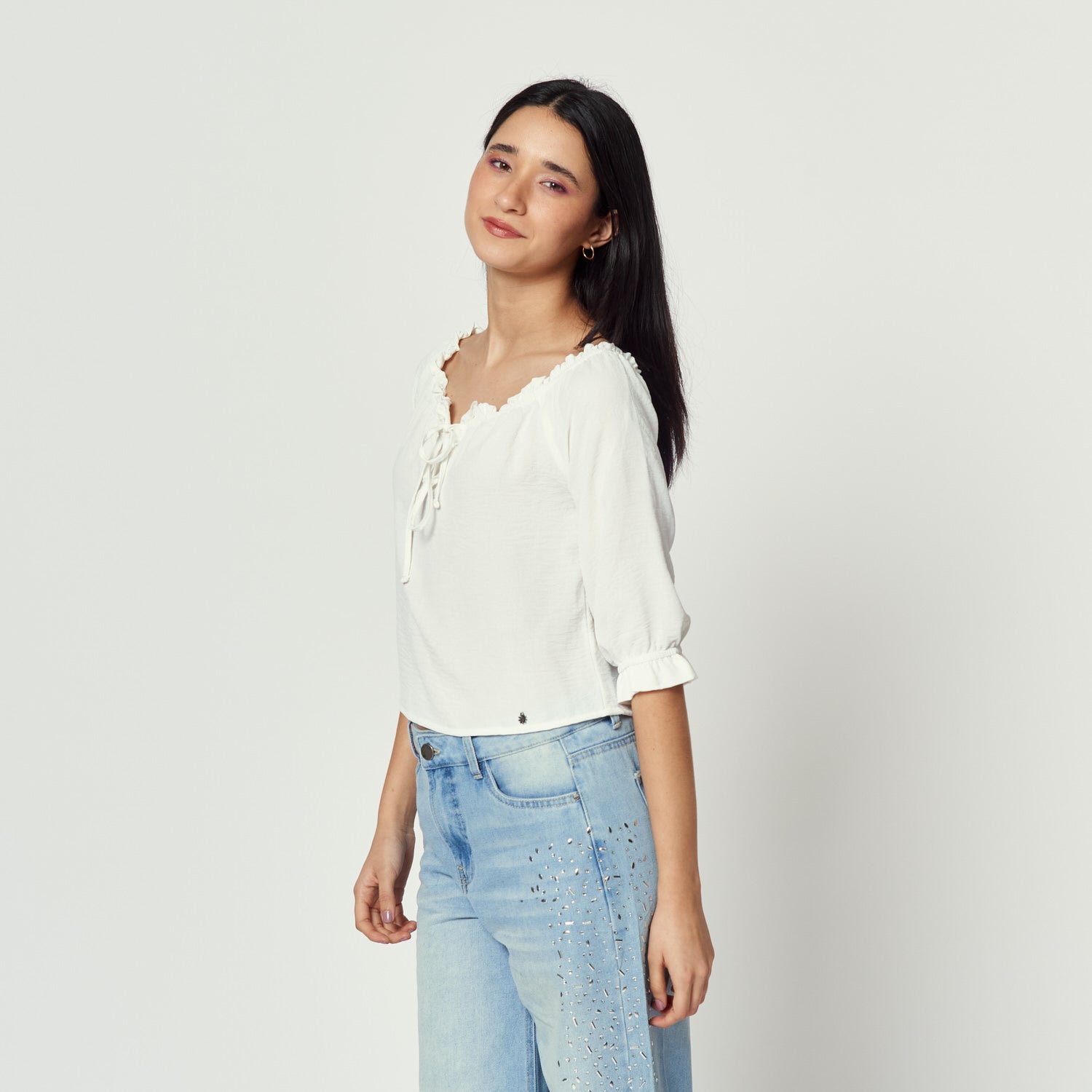 Blusa en rayón de estilo versátil. El tono hueso se adapta a cualquier combinación de temporada.