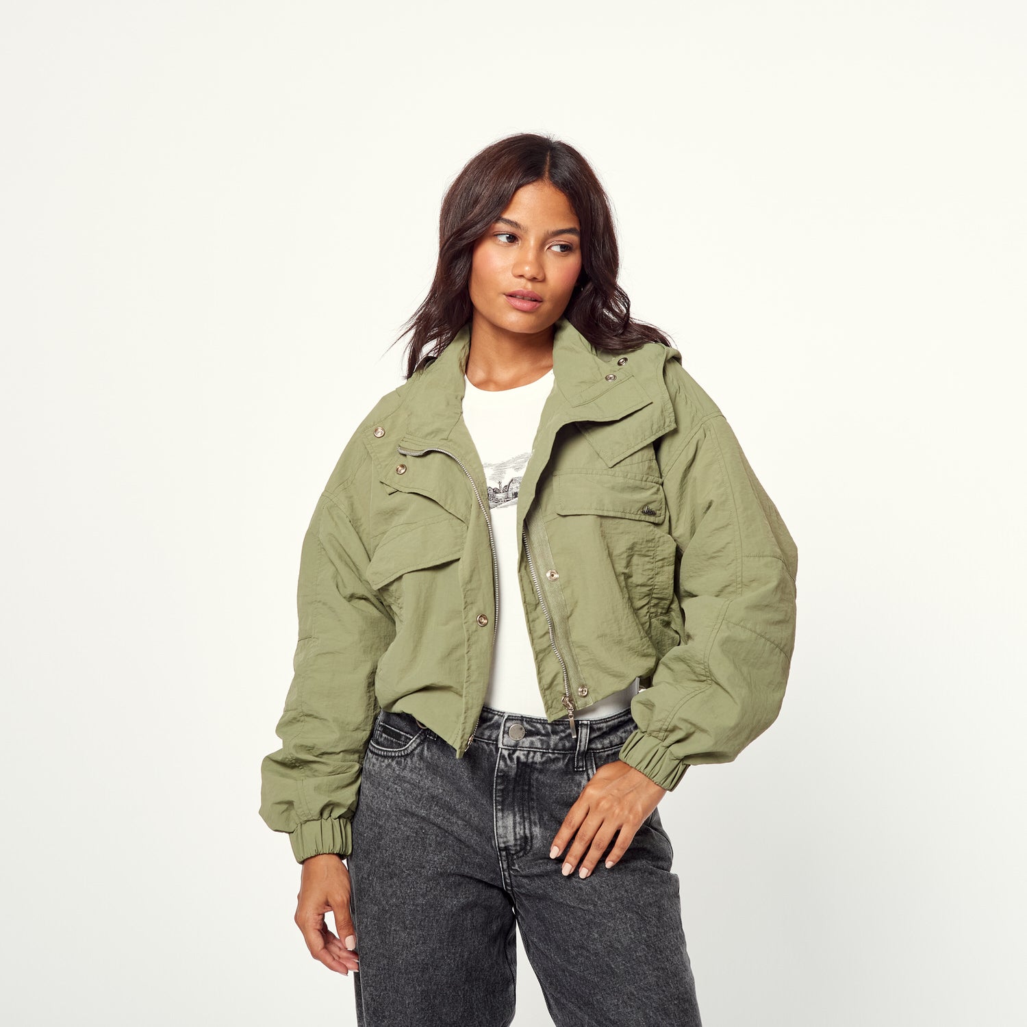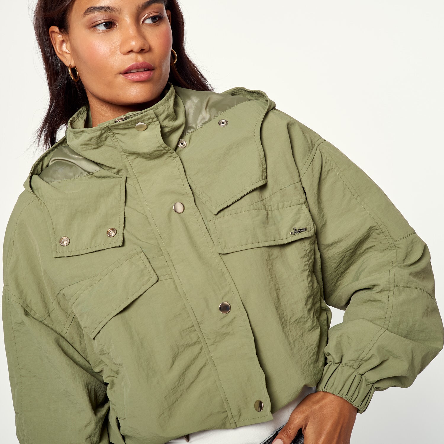¡Protección con estilo! La Casaca Sanilia en tafeta color verde es perfecta para un look sporty chic. Úsala para un día de deporte, una salida con amigas o para un look casual con onda.