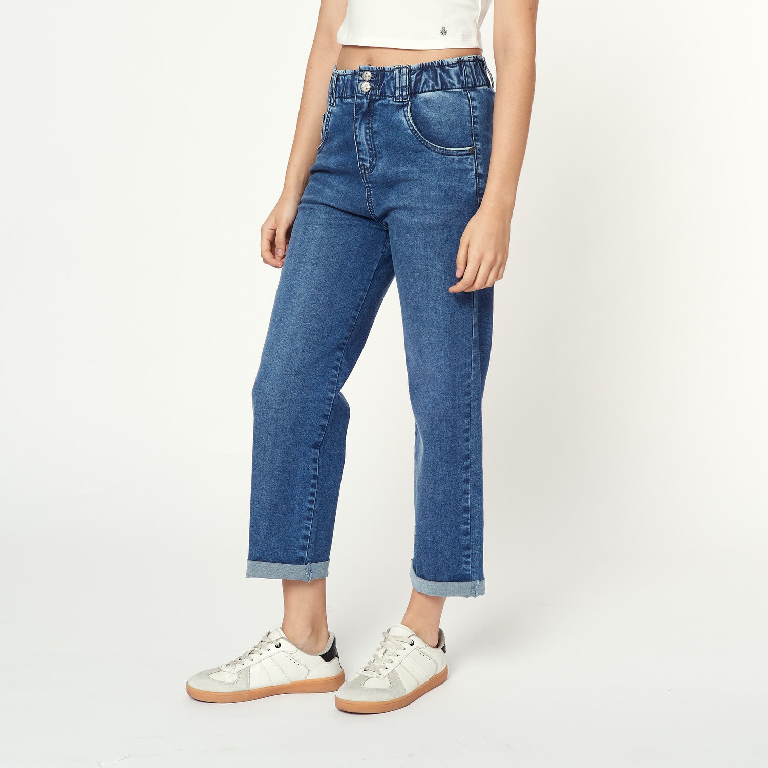 Jean en denim stretch de fit favorecedor. El color azul resalta su estilo casual.