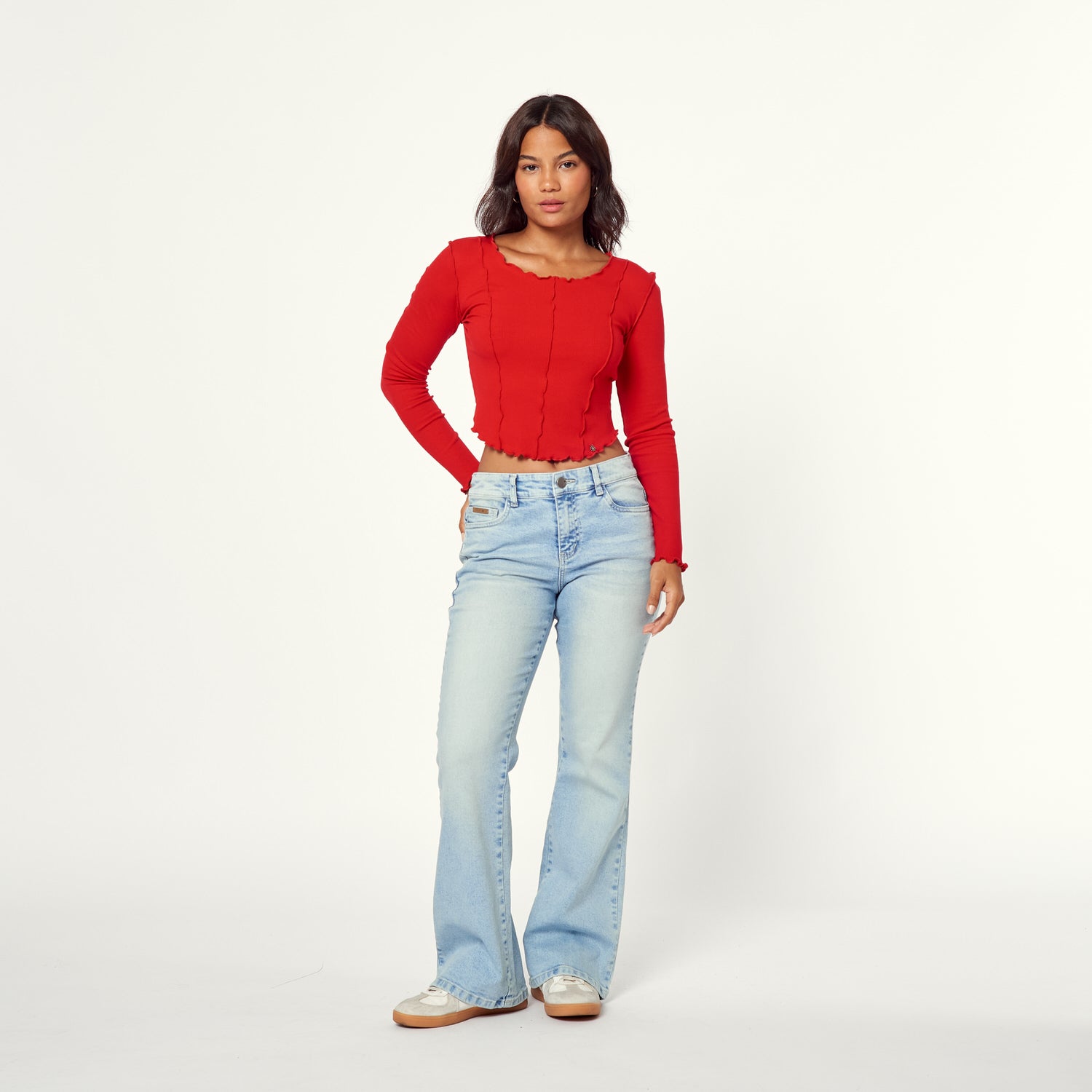 ¡Comodidad y estilo! Este jean de denim stretch en color celeste es perfecto para un look moderno y favorecedor. Su tejido elástico te brinda libertad de movimiento y su diseño ajustado realza tu figura. ¡Combínalo con blusas y tacones para un outfit elegante y con personalidad!