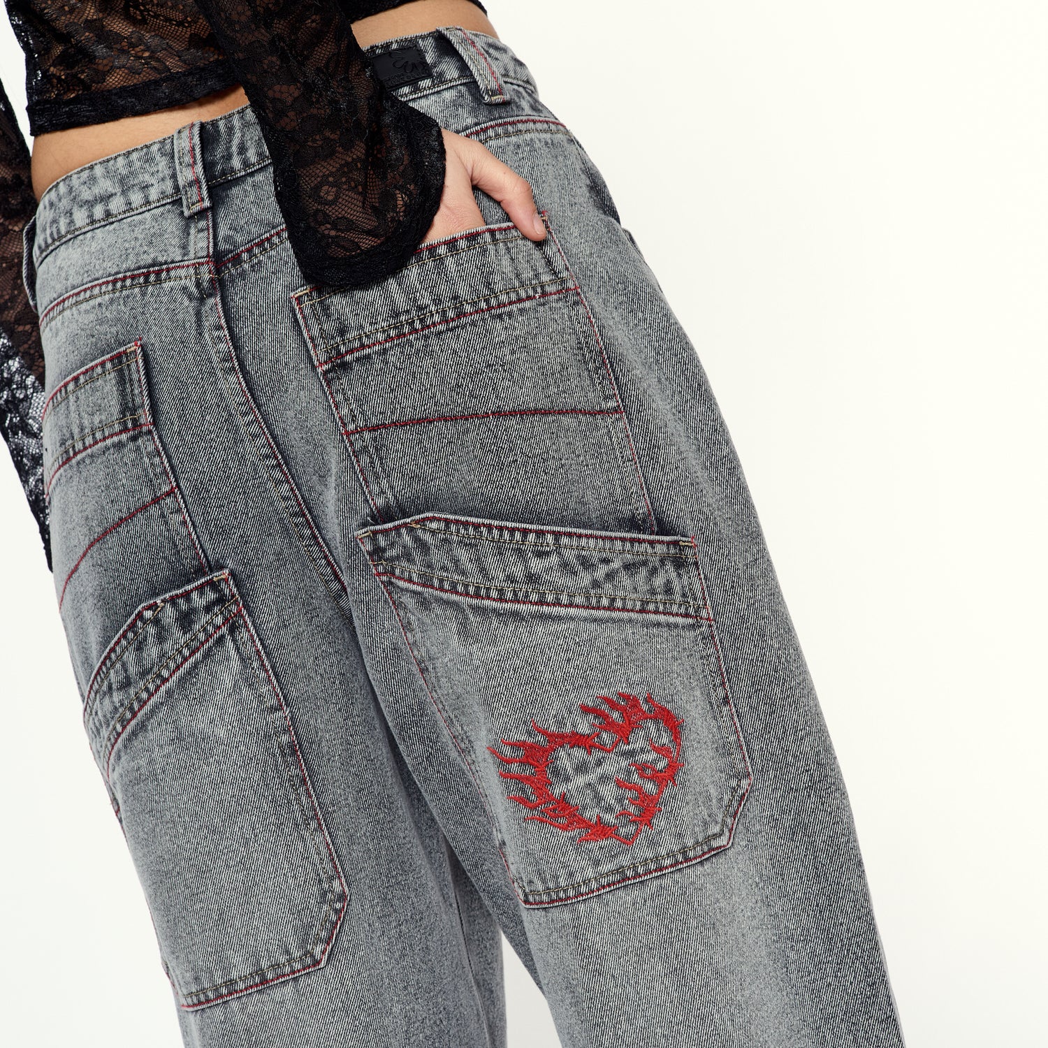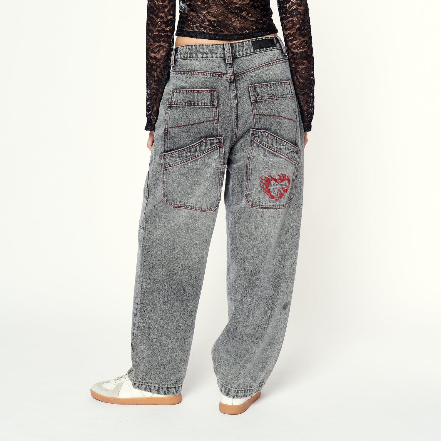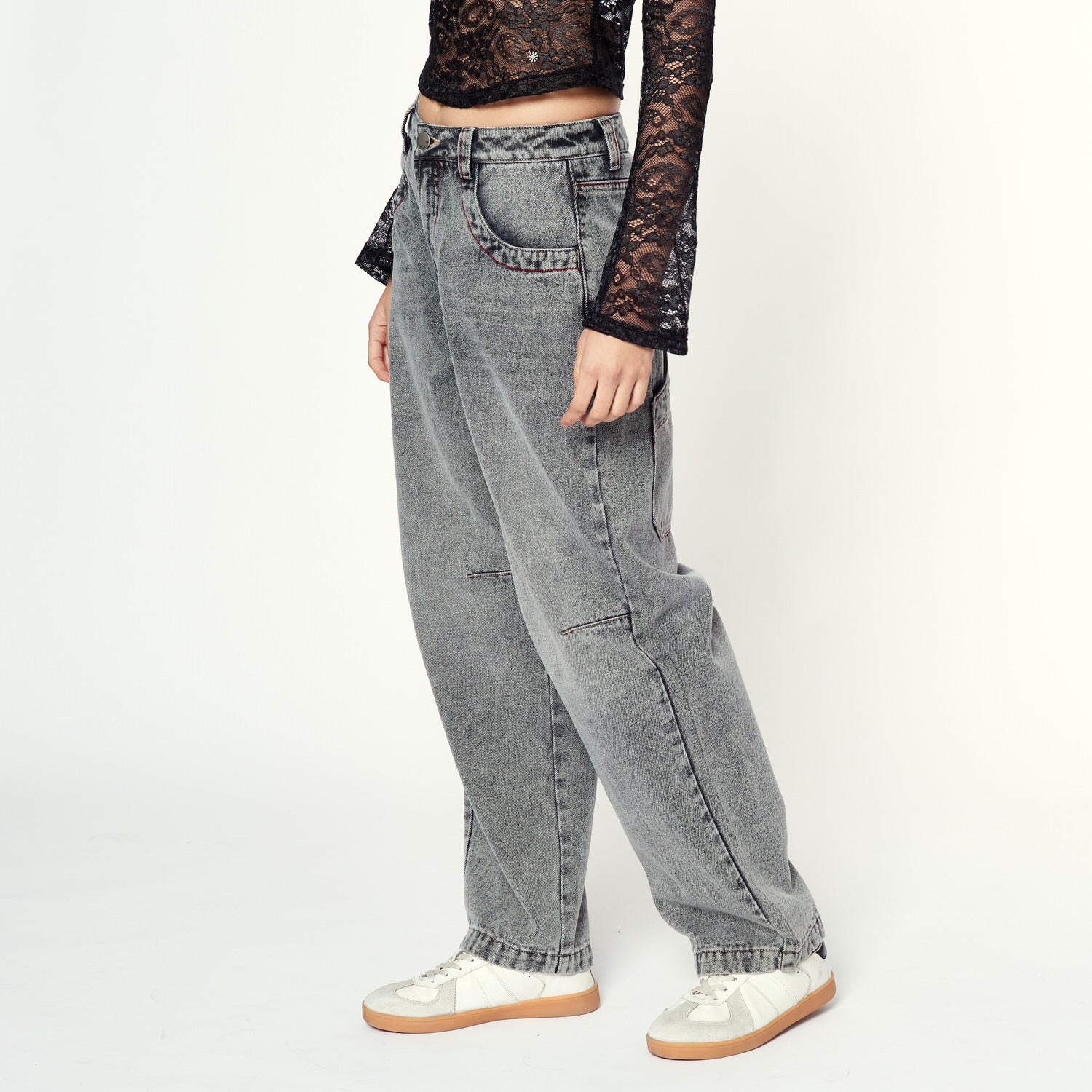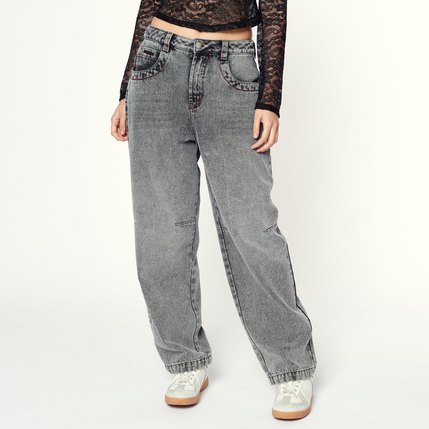 Estética grunge en su mejor versión. Motora llega en denim rígido plomo con corte relaxed. Ideal con tops ajustados o oversized.