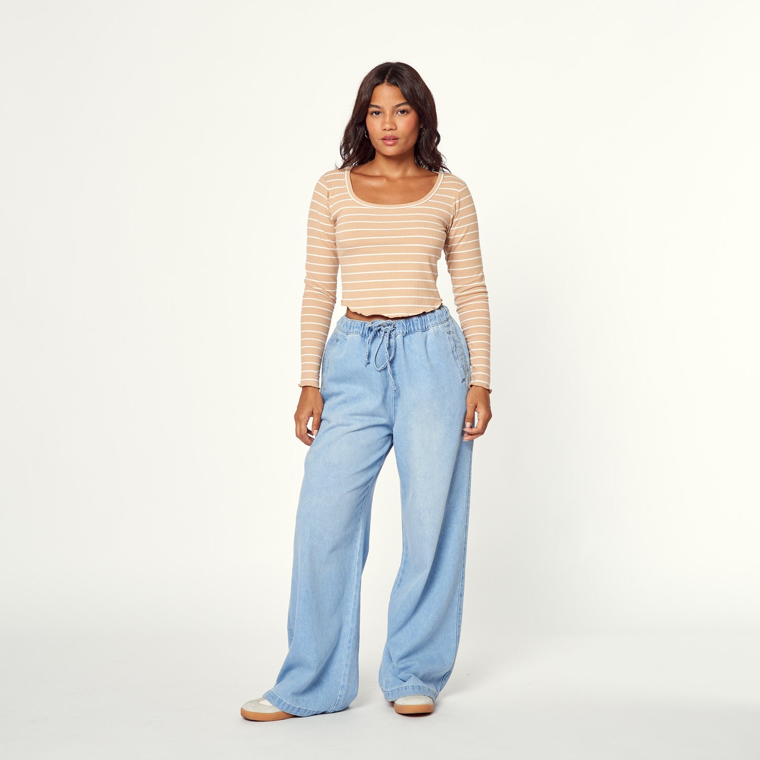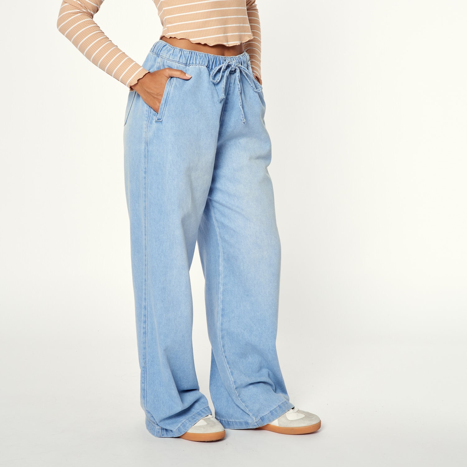 ¡Clásico y resistente! Este jean de denim rígido en color celeste es perfecto para un look casual y cómodo. Su diseño clásico y su tejido resistente te acompañarán en todas tus aventuras. ¡Combínalo con camisetas básicas y zapatillas para un outfit relajado y con estilo!