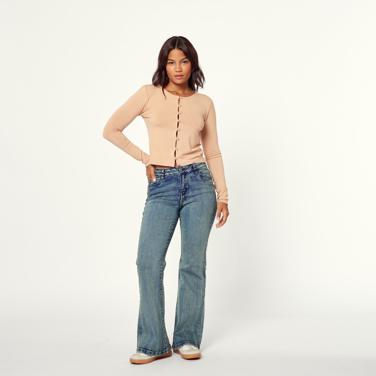 ¡Denim con onda! El Jean Sophie en denim stretch celeste es perfecto para un look moderno y con actitud. Su diseño de bota ancha te hará lucir increíble. Úsalo con una camiseta básica, un top o una blusa para darle un toque cool a tu outfit.