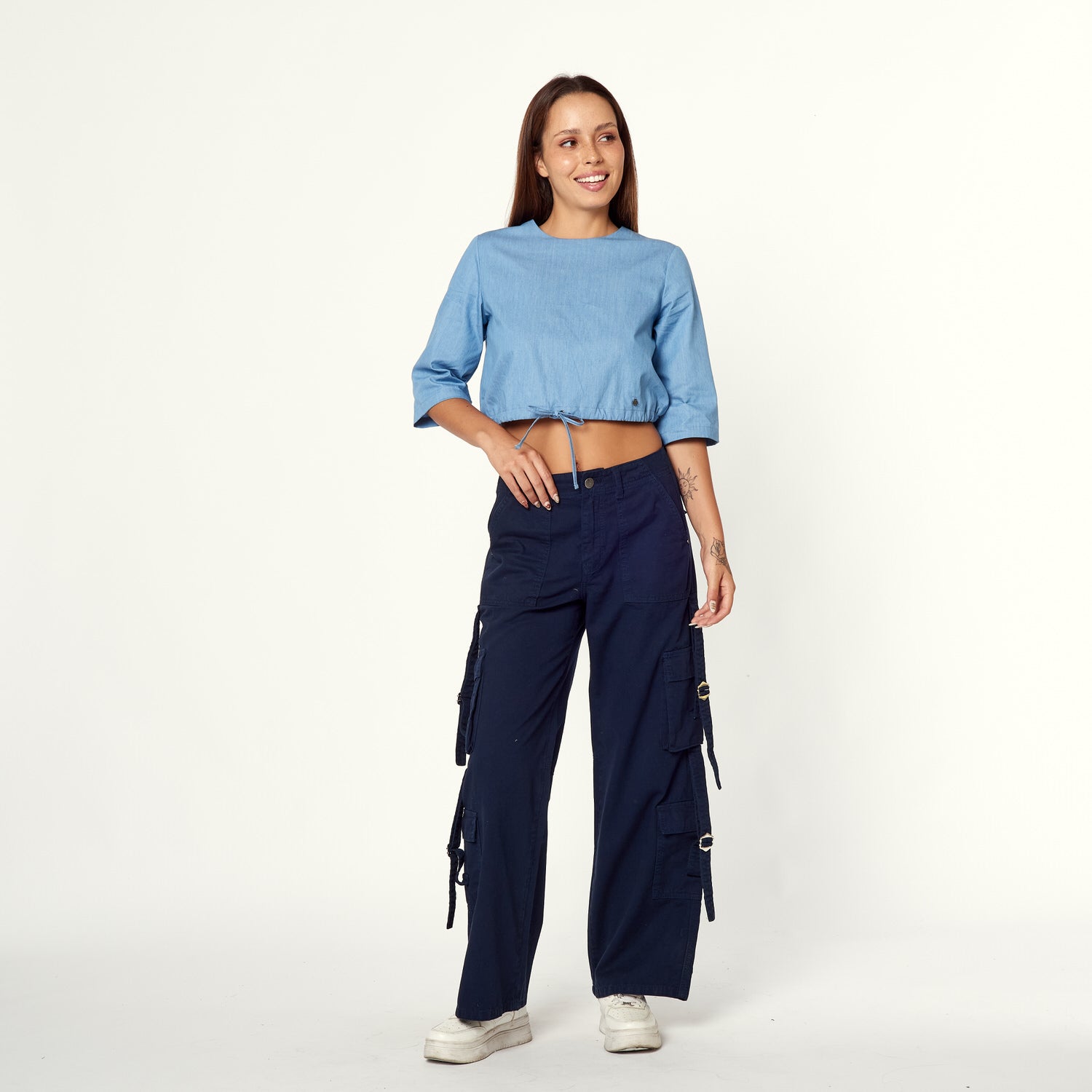 Un toque utilitario y moderno para tu look. El Pantalón Devo en drill rígido azul presenta un fit recto y tiro medio con detalles de bolsillos cargo que le dan un aire aventurero y urbano. Ideal para combinar con camisetas básicas, camisas a cuadros o zapatillas para un estilo desenfadado y con personalidad.