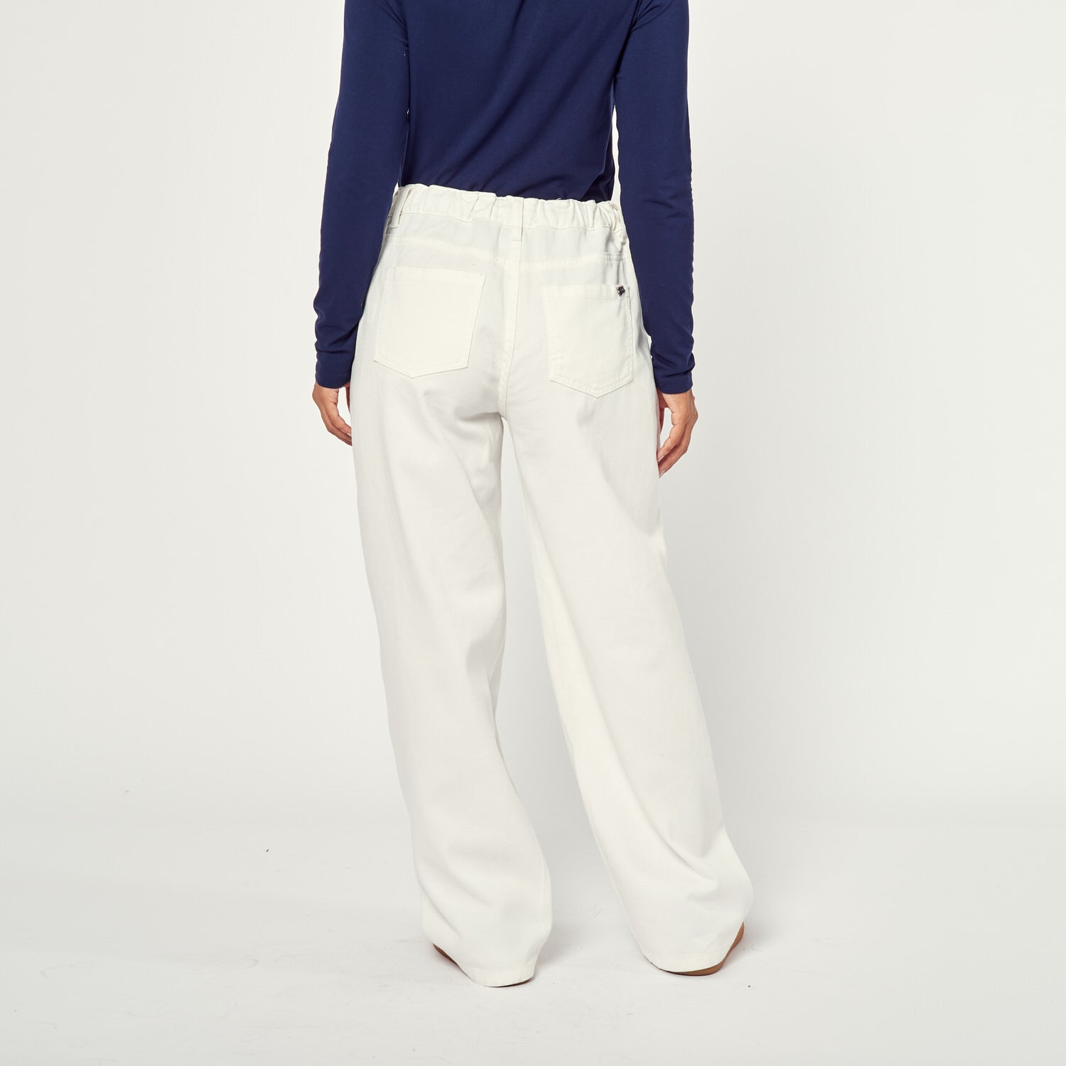 ¡Estilo urbano y resistente! Este pantalón de bull denim rígido en color hueso es perfecto para un look moderno y con actitud. Su diseño amplio y su tejido resistente te acompañarán en todas tus aventuras. ¡Combínalo con camisetas estampadas y botas para un outfit urbano y con personalidad!