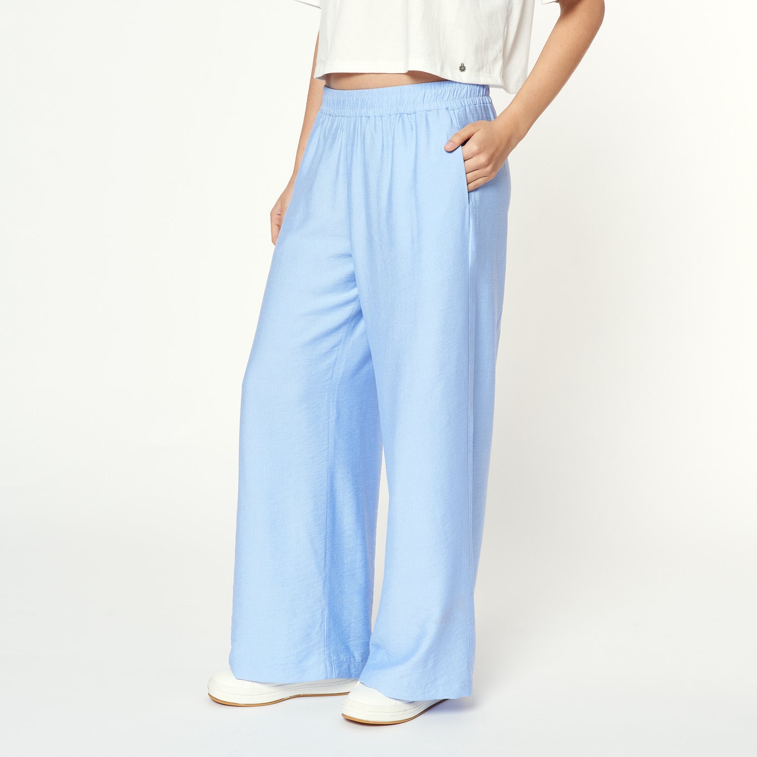 Pantalón en lino de caída ligera. El celeste aporta frescura y un aire veraniego.