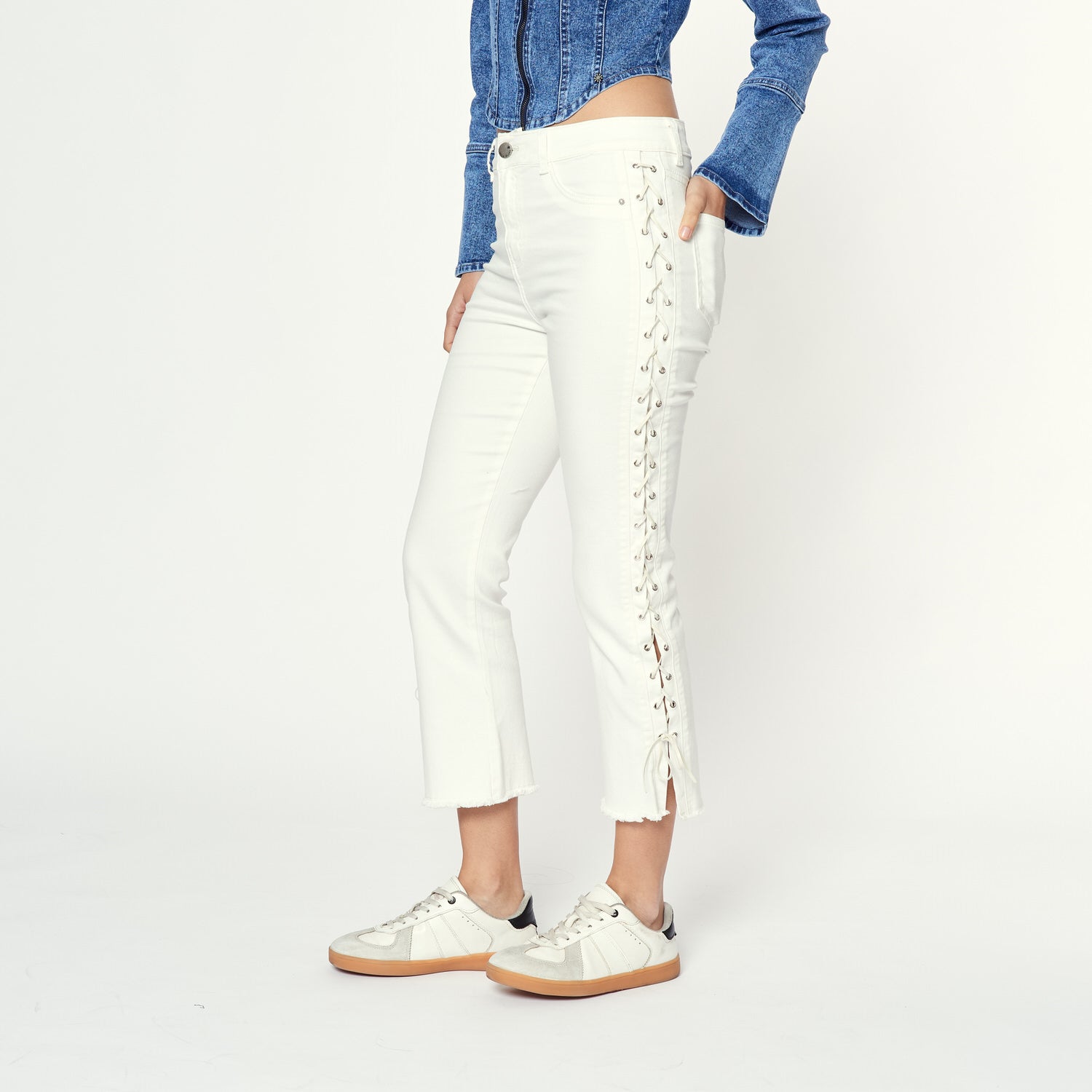 Corte clásico con twist moderno. El Tati en drill stretch hueso va con todo. Ideal para climas intermedios.