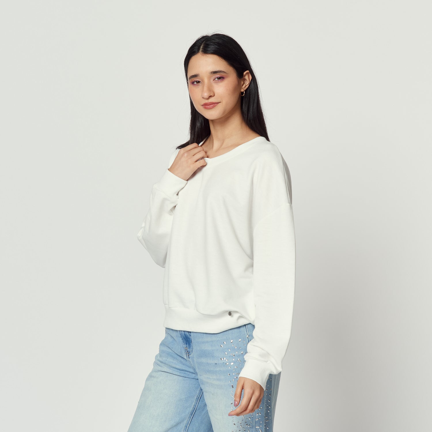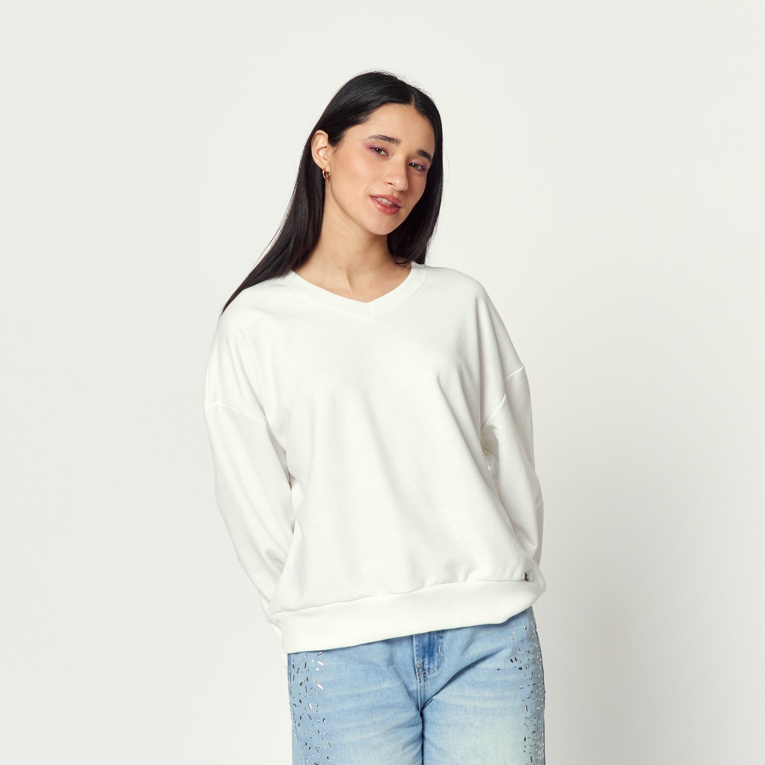 Polera en french terry de estilo básico. El tono hueso la convierte en un esencial fácil de llevar.