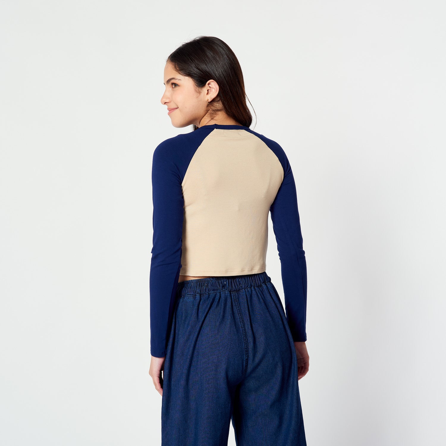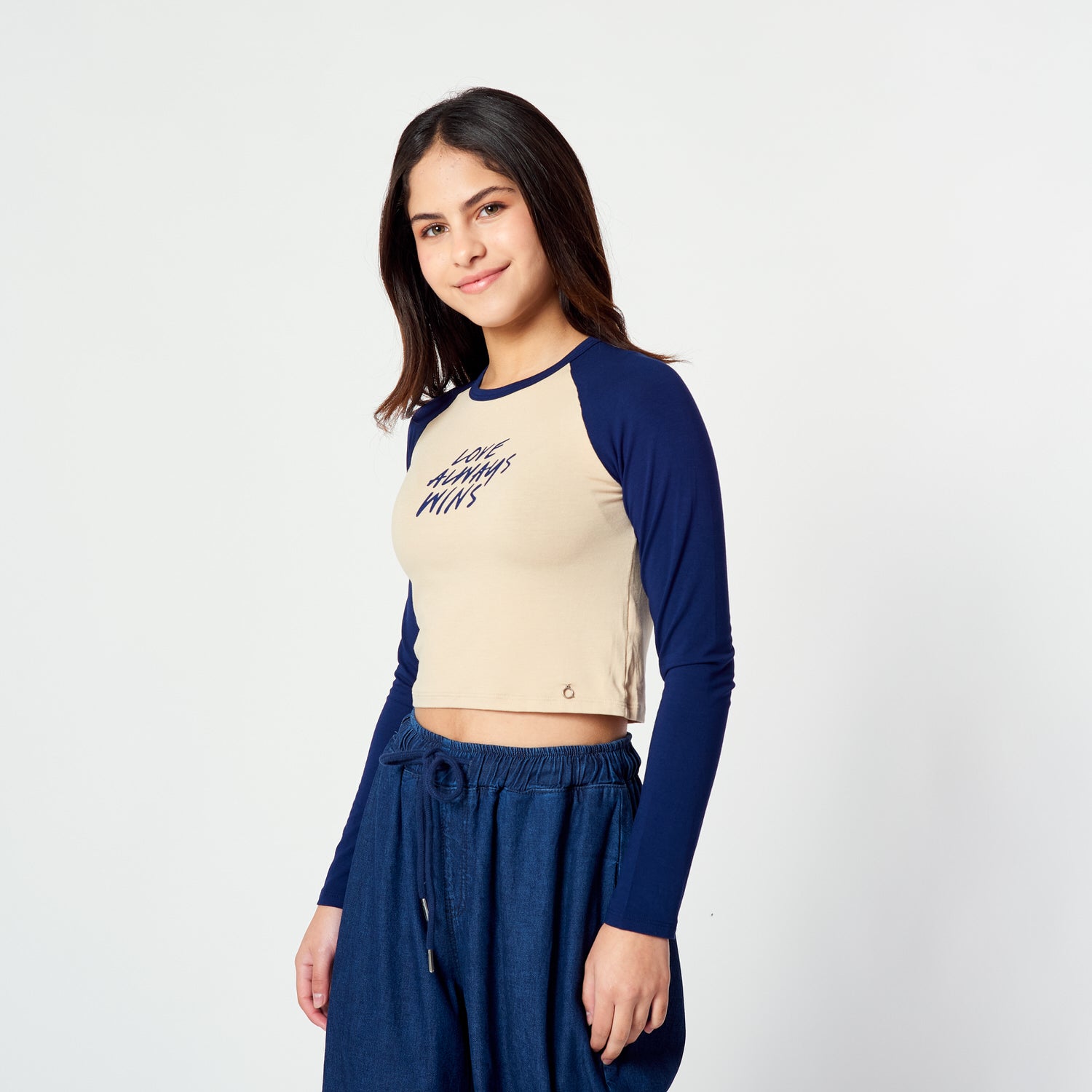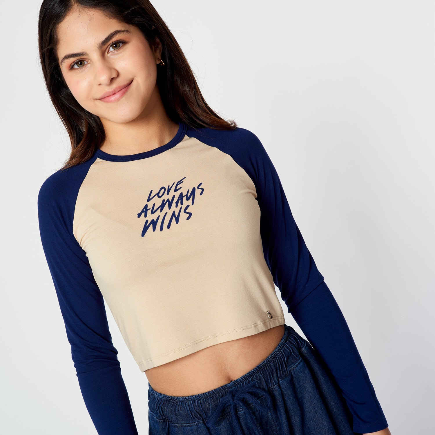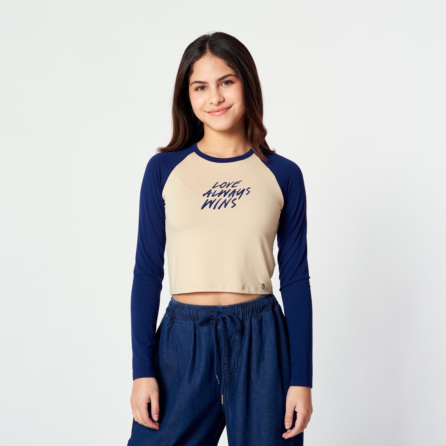 # MUSTHAVE 👀Polo crop manga larga con escote redondo, cuello collareta y estampado delantero.