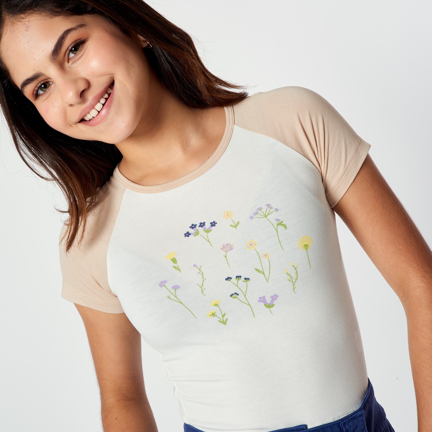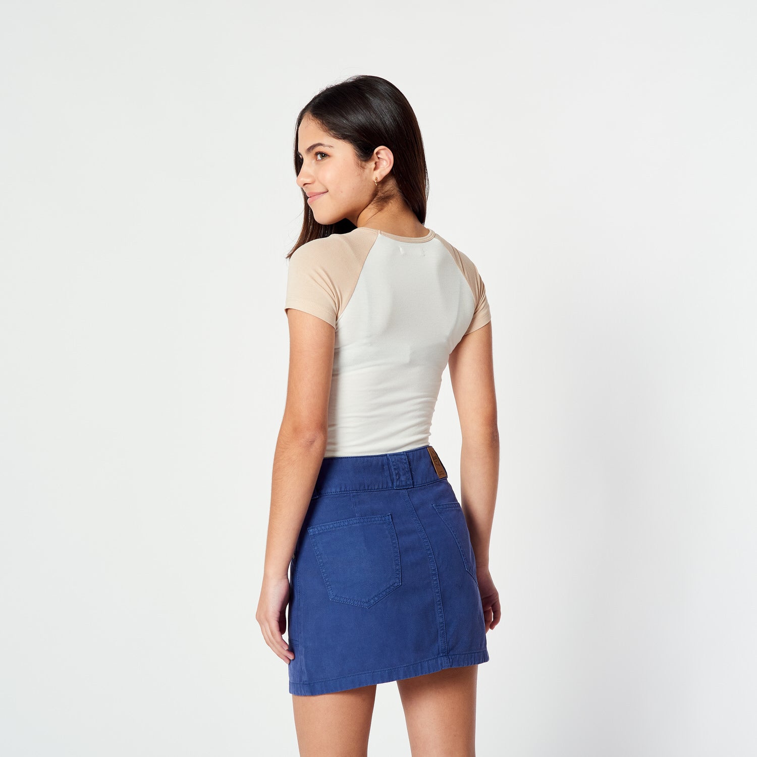 WOW💘 Polo manga corta con escote redondo fit crop y detalle de escote delantero