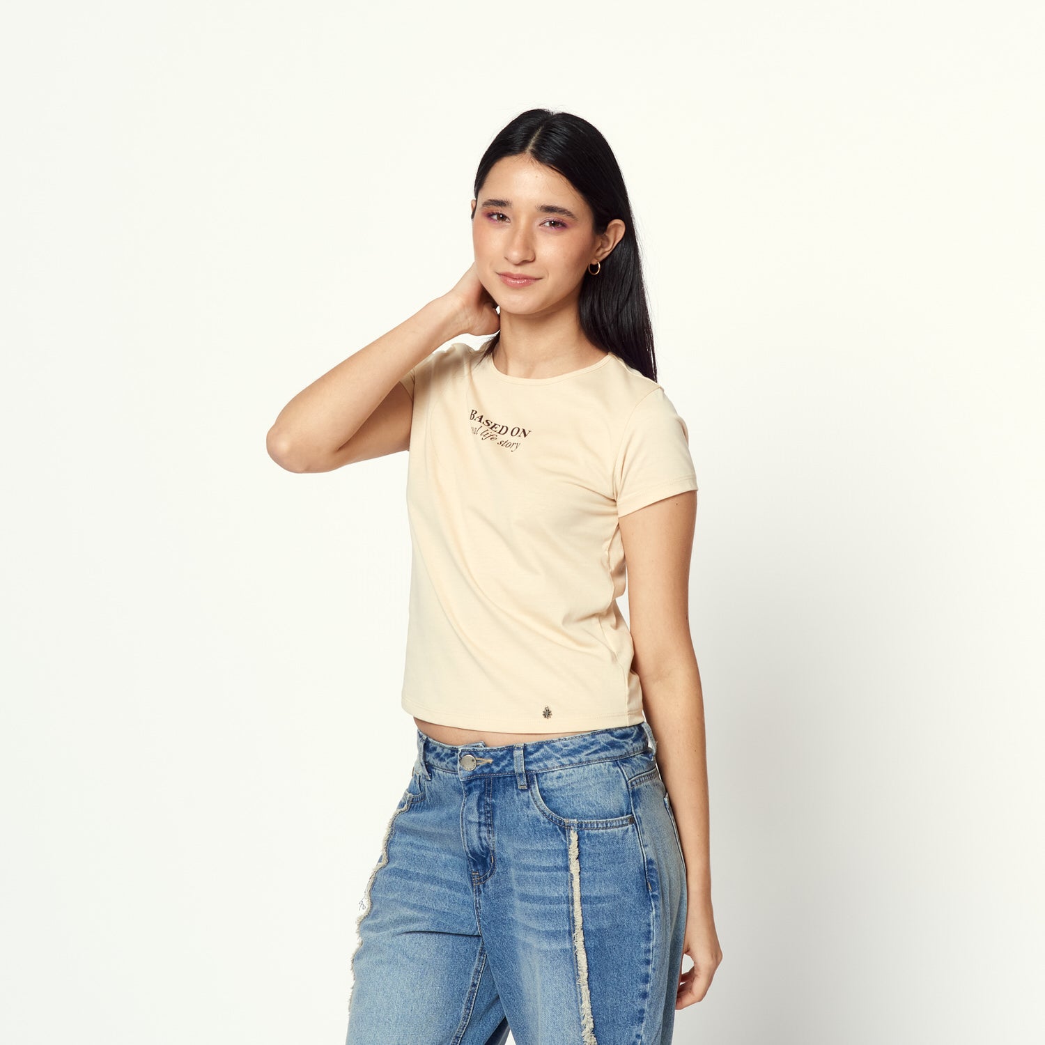 El aliado de tu día a día. Polo en jersey ligero con caída natural. Su tono crema combina con todo y se convierte en tu comodín de temporada.
