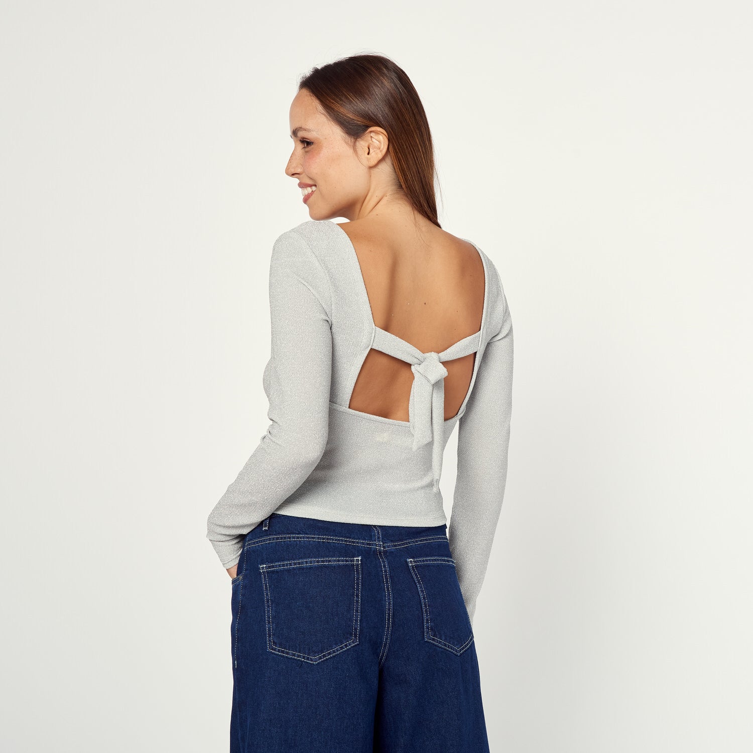 Fácil de combinar, difícil de ignorar. El gris lame brilloso suma glamour sutil a tus días.