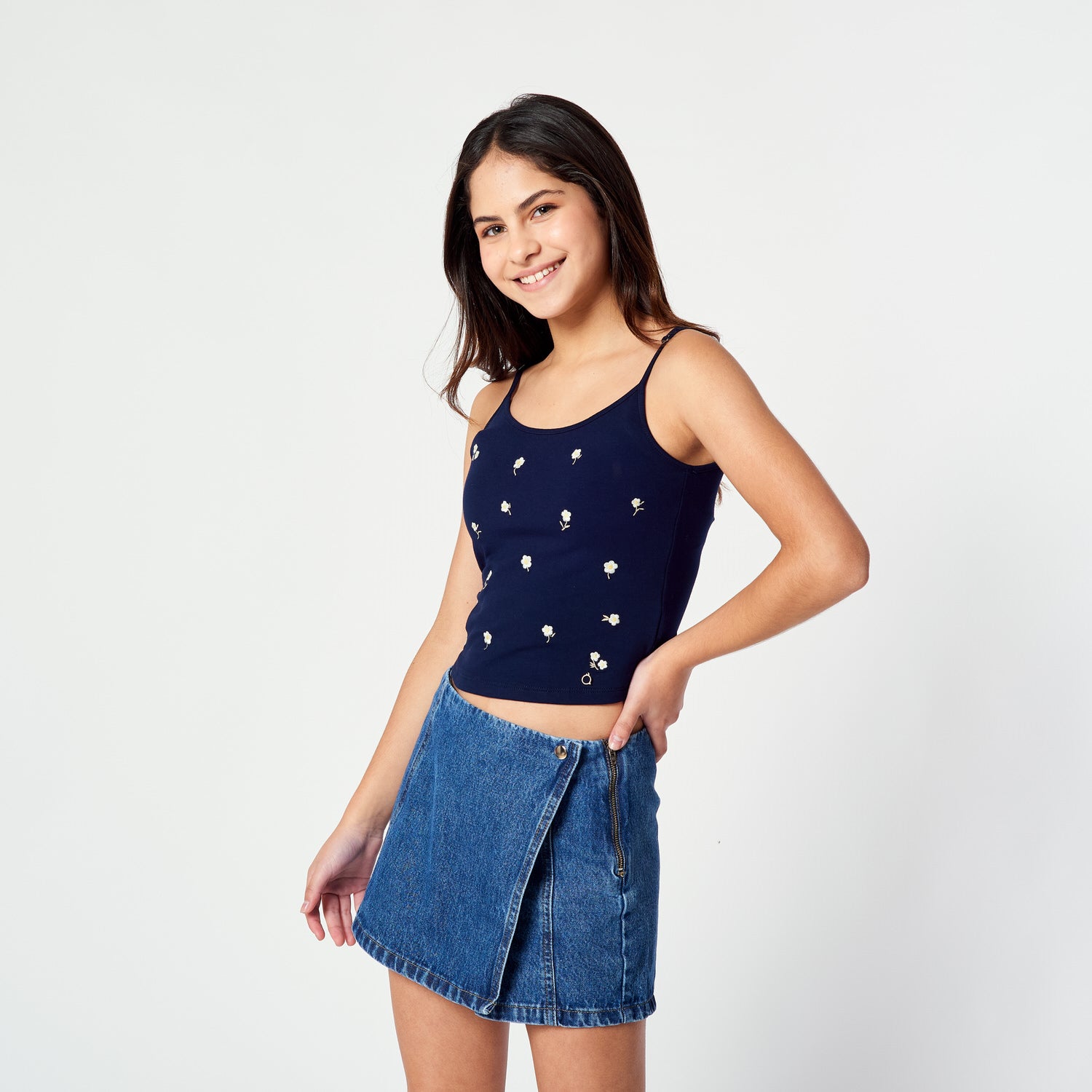 ESSENTIAL💓 Polo con escote y sisas con collareta, y detalle de bordado delantero