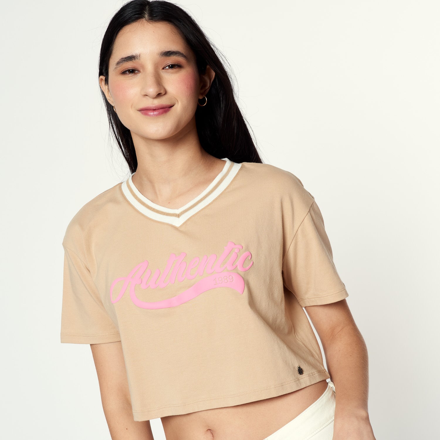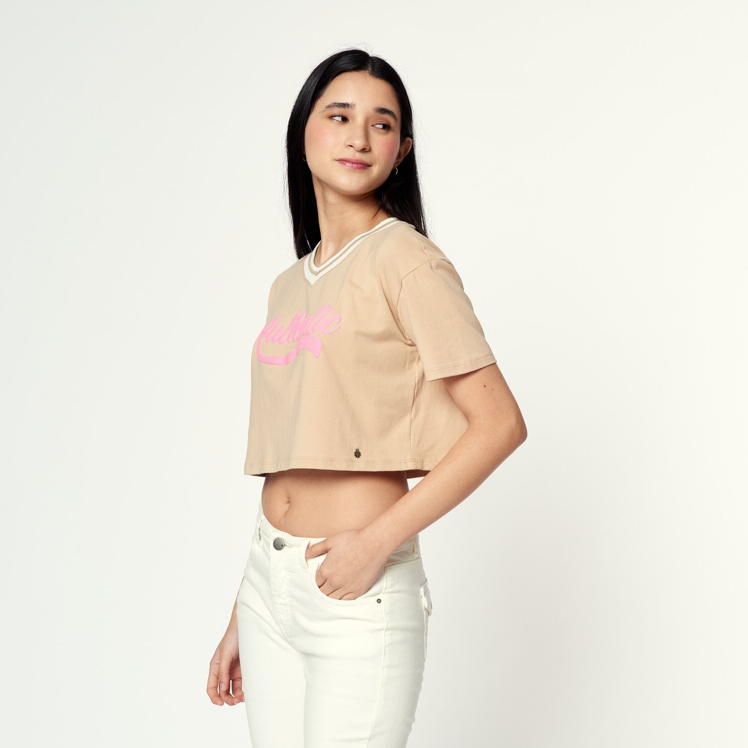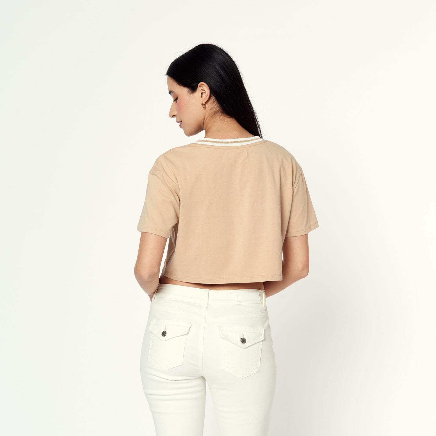 El polo Sportclub en jersey crema es ligero y trendy, perfecto para combinar con jeans o faldas y lograr un estilo sporty chic