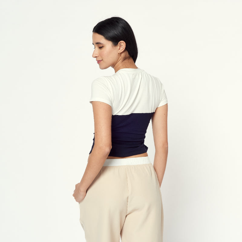 Color y comodidad en una sola prenda 💙. El Polo Verita en jersey lycrado azul y hueso se ajusta suavemente, aportando frescura y estilo para un look juvenil y dinámico.