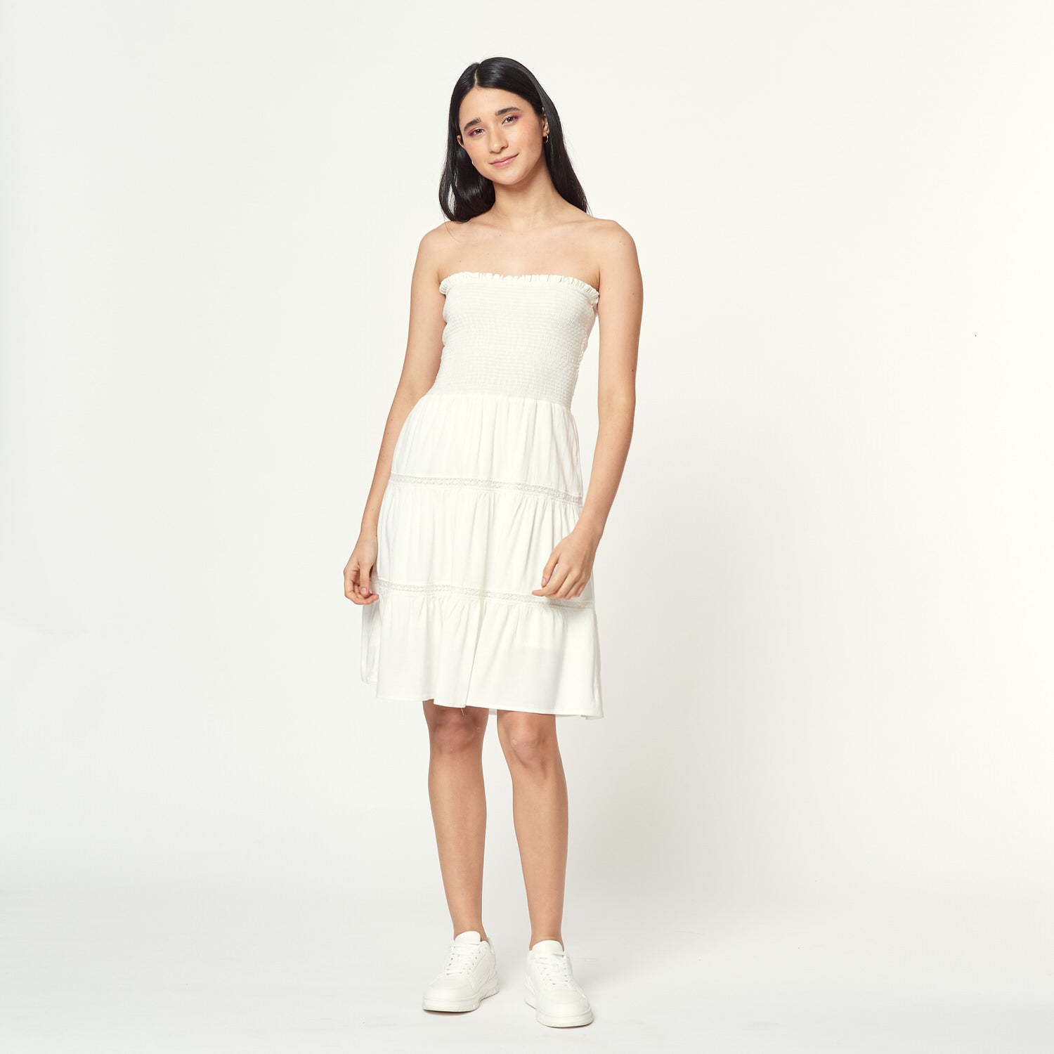 Sofisticación sin esfuerzo. Vestido en rayón de caída fluida, fit relajado. El color hueso aporta elegancia y frescura para días soleados o salidas nocturnas.