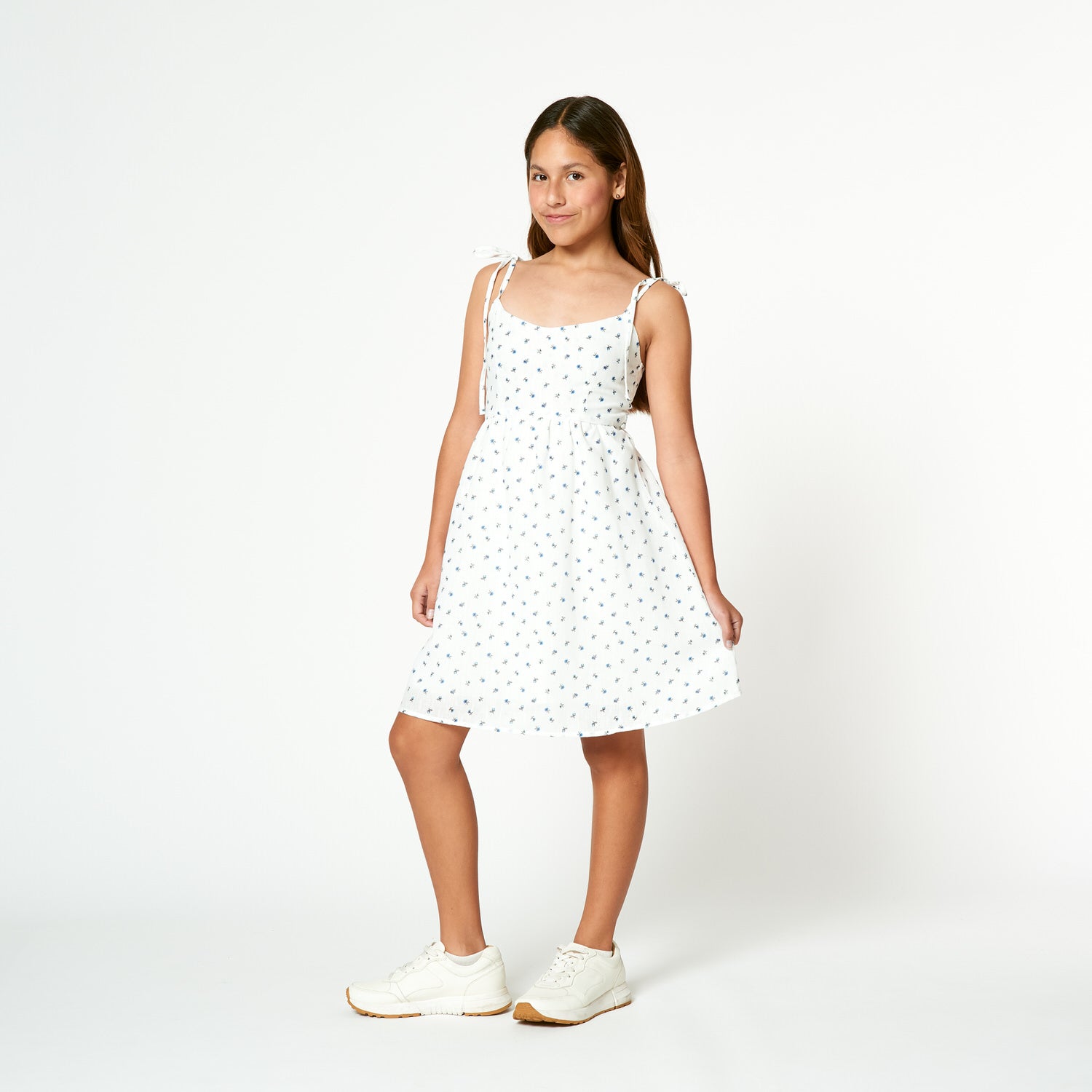 El vestido New Fran en lino verona cuenta con print de polka dots, fluido y lleno de movimiento. Su diseño natural y estampado encantador lo convierten en la prenda ideal para un look alegre y con personalidad.